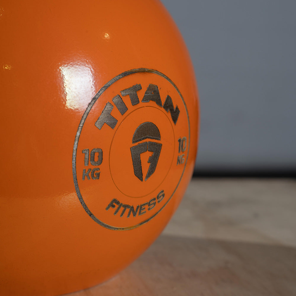 To make it even easier to tell the difference, the kettlebells are color-coded and feature a laser-engraved Titan logo along with clear weight markings in kilograms. The smooth polished, durable handle is wide-looped, and the kettlebell’s rounded shape with a flat, stable base ensures it won’t wobble during your exercises.