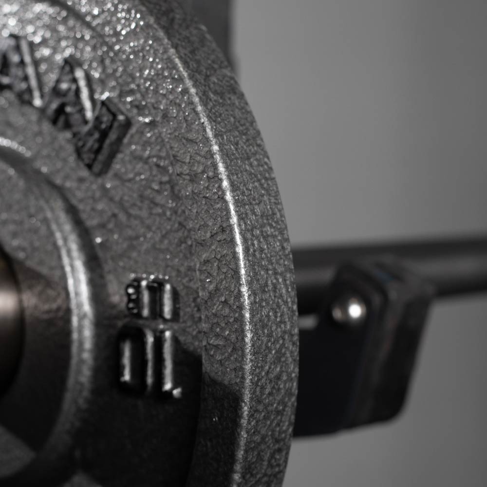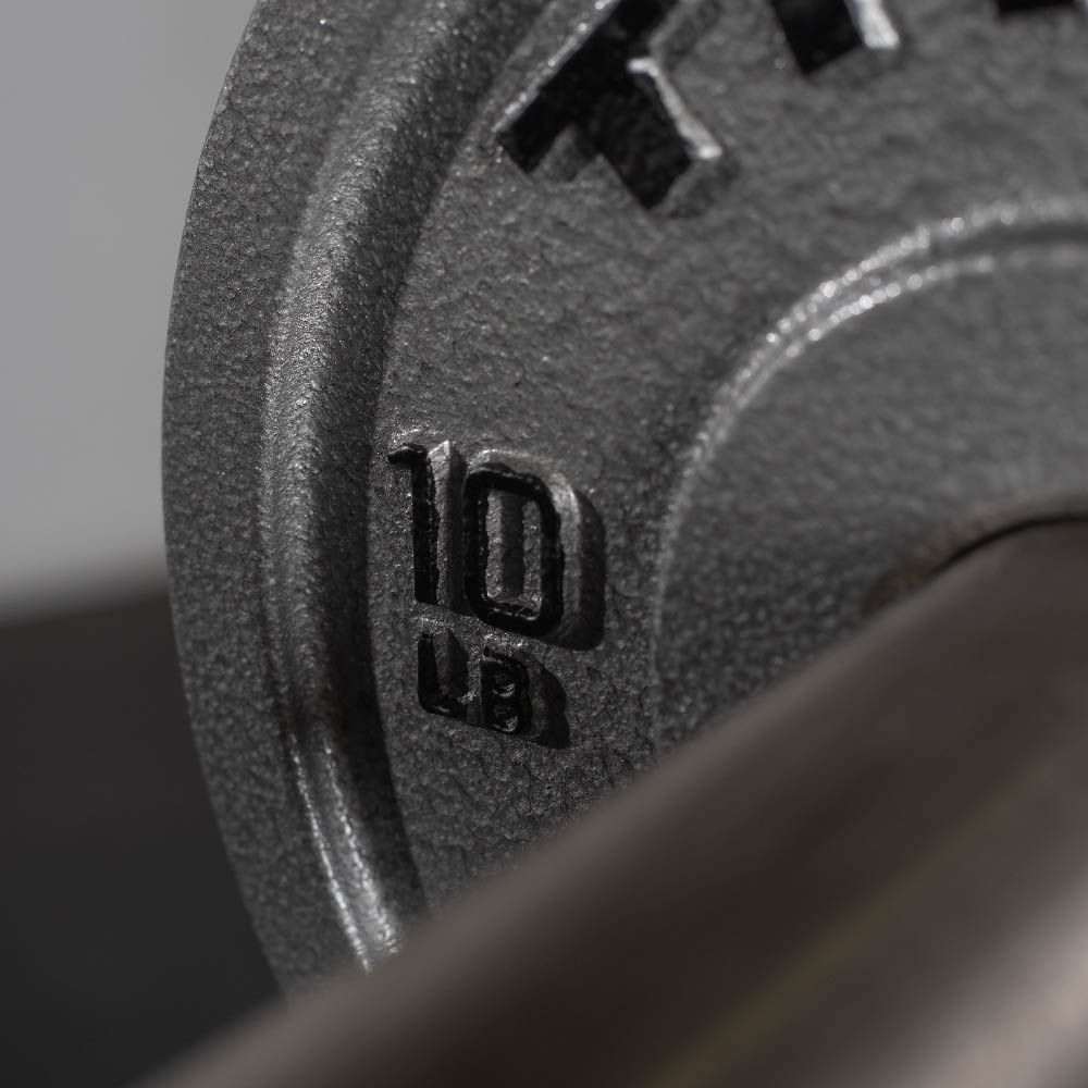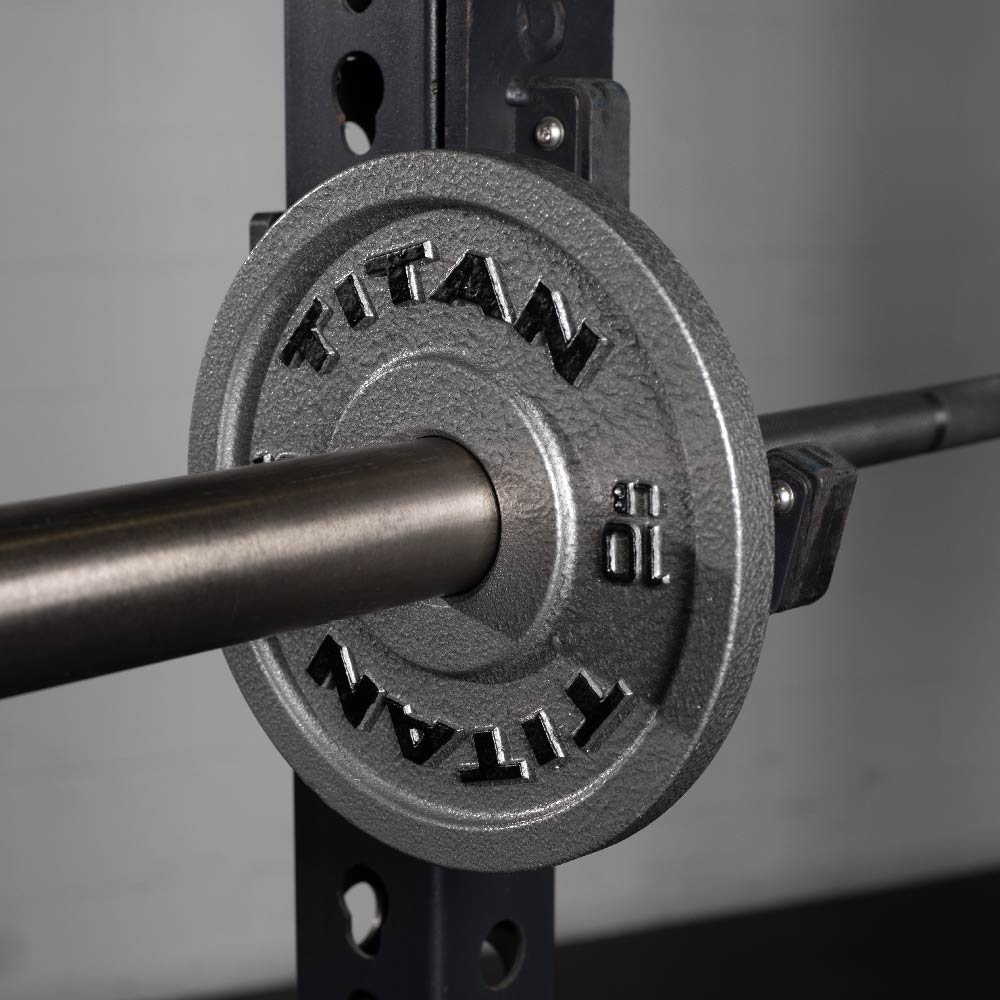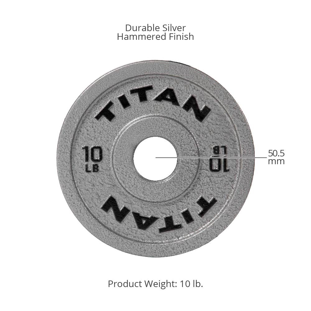 Unleash your inner TITAN with the Cast Iron Olympic Plates, crafted with a high-quality classic silver hammered design. Each plate features a 50.6mm collar opening, dual raised TITAN logos, and LB weight indications. With a simple and clean look, these highly durable plates are a staple for any home or garage gym and are ready for you to max out your next PR.