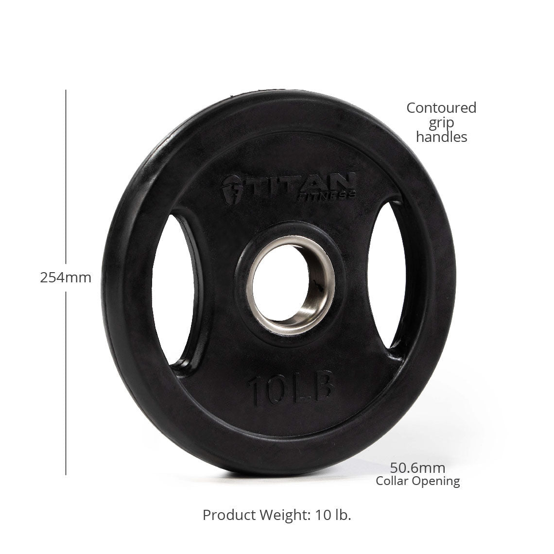 The Grip Plates are offered in pairs of 2.5 LB, 5 LB, 10 LB, and 25 LB increments and are sold individually in 35 LB, 45 LB, and 55- LB. Additionally, we offer a full set of 245 LB. Each plate is made from Cast Iron and provides a durable rubber coating that prevents the weight from chipping and rusting. Each plate is designed with a 50.6mm center hole and features contoured grip handles to provide a secure grip when carrying or loading them onto your Olympic size barbell.