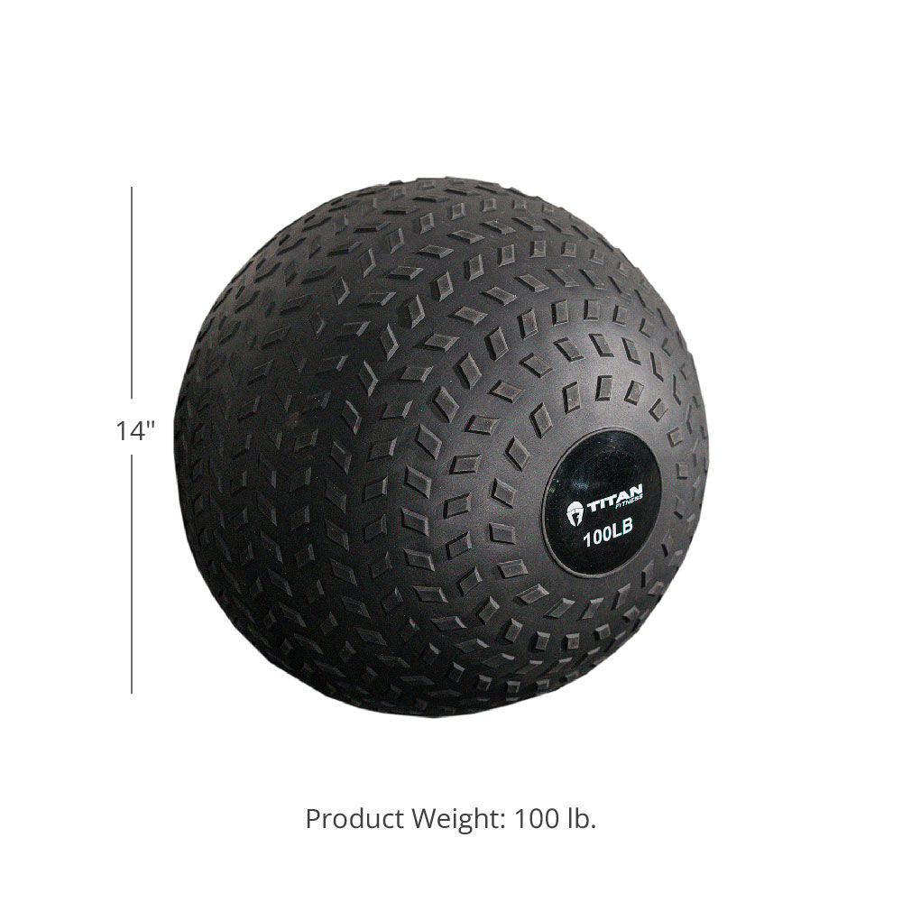 The 100 LB Slam Ball is constructed for the highest-level performance, optimizing a full-body workout, and built to perform multiple reps throwing, slamming, or catching the ball. This non-bouncy durable ball is filled with sand to ensure no bounce and absorb impact. The shell is crafted with a high-quality rubber tread pattern that is easy to grip and will prevent blowouts when slammed to the ground. Slam balls are designed to increase muscle mass, enhance cardiovascular endurance, and improve hand-eye coordination while working with a partner. They are also perfect for getting rid of excess energy and pent-up frustration. Utilize this ball for overhead lunges, ball slams, Russian twists, squat throws, or air squats to take your workout to the next level.