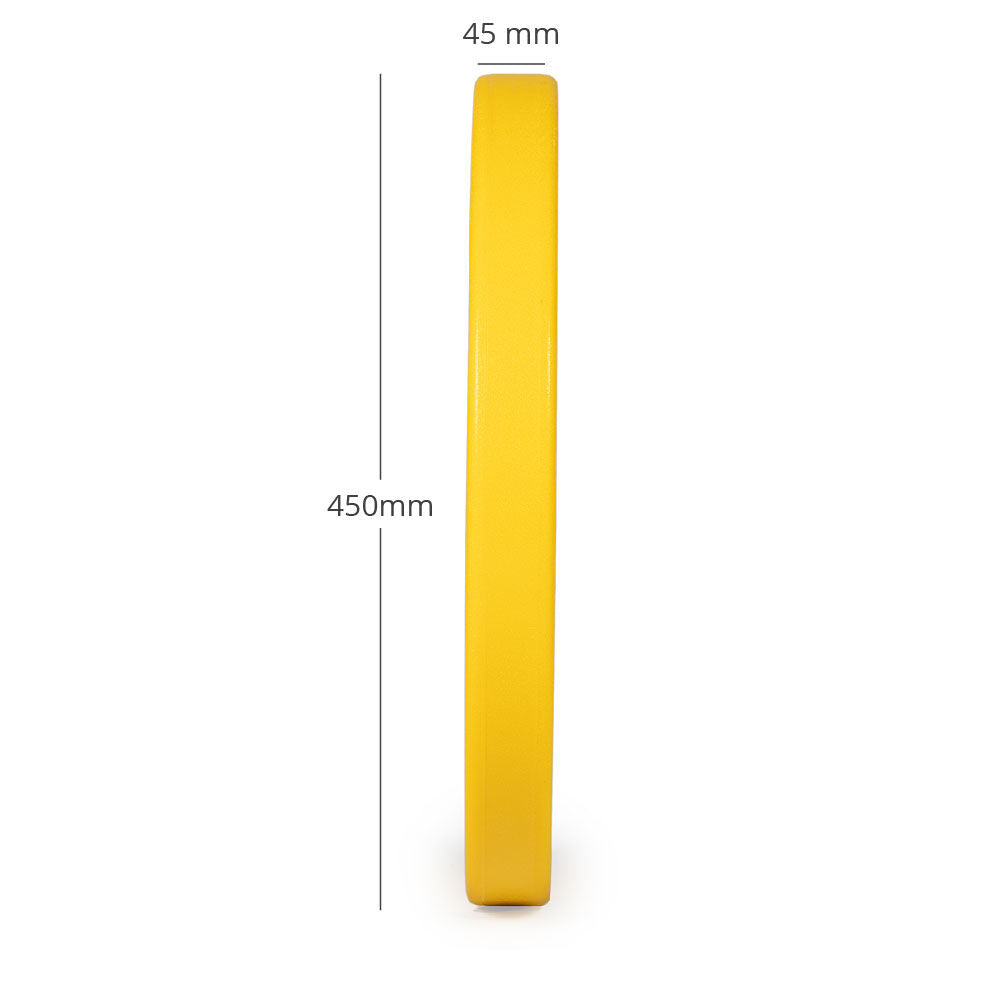 The KG Urethane Color Bumper Plates are offered in pairs of 5 KG increments and are sold individually in 10, 15, 20, and 25-kilograms. Additionally, we offer a 150 KG full set. Each plate features a 50.6 mm steel-lined center hole, which fits Olympic size barbells and will maintain their shape in between sets. The 5 KG plate is 24 mm thick to increase durability, while the 25 KG plate is 56 mm thick. This competition bumper plate is durable, made from rubber over a steel core, and is ideal for anyone serious about Olympic lifting.