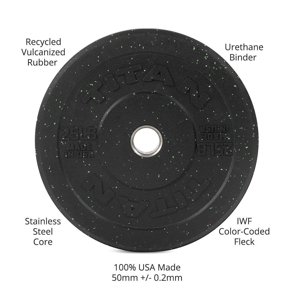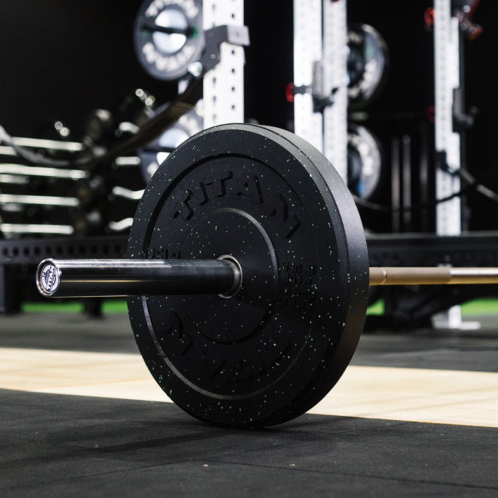 100% made in the USA, these crumb rubber bumper plates are built with a seriously strong combination of recycled vulcanized rubber and a proprietary urethane binder for exceptional durability. Each plate features a 2" stainless-steel collar insert for added strength and longevity.