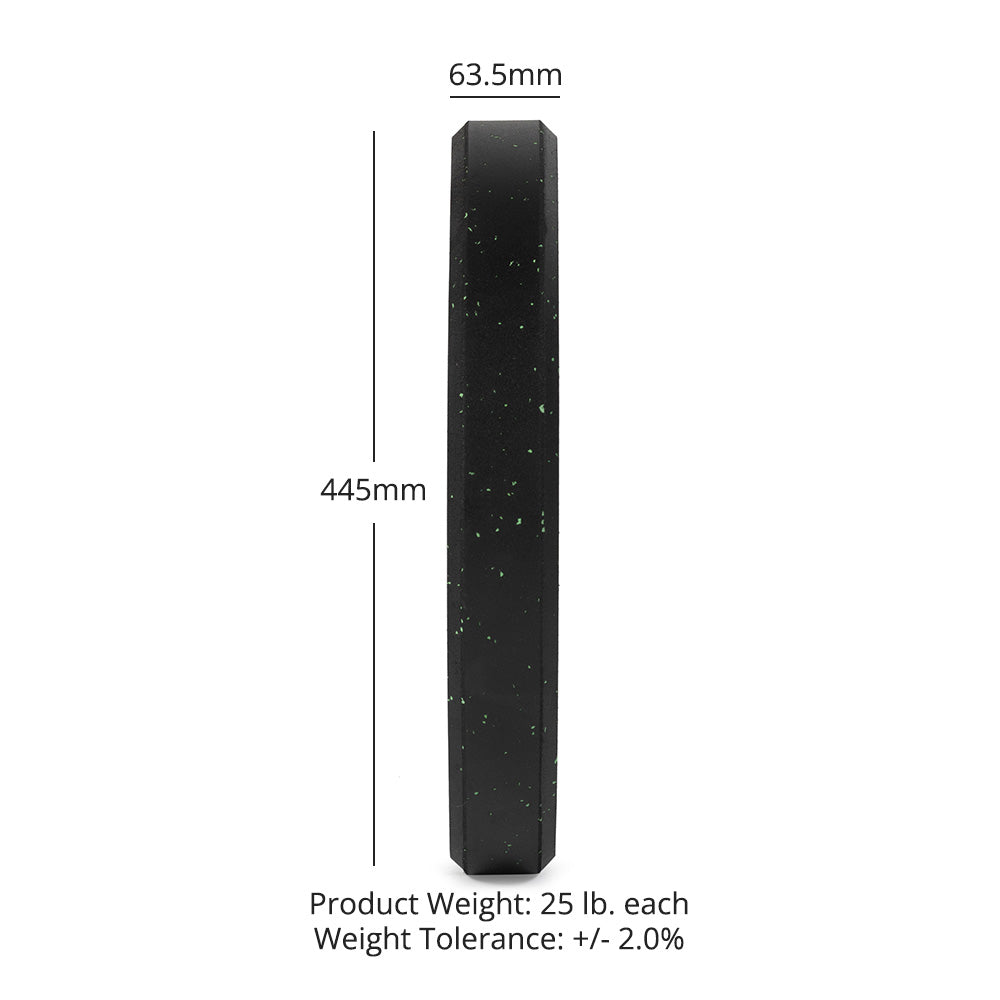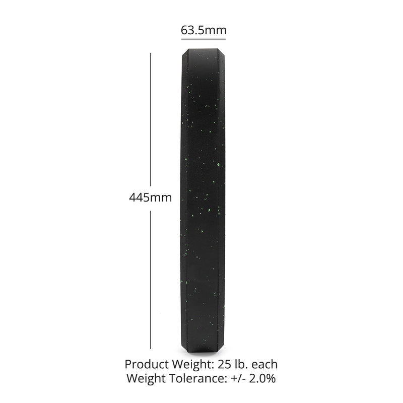 This plate weighs 25 LB and measures 445mm (17.5") in diameter with a 63.5mm (2.5") thickness and comes as a set of two.