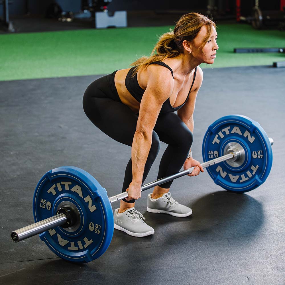 Pair these rugged bumper plates with your favorite Olympic barbell to elevate your strength training, powerlifting, or Olympic lifting. These slim plates feature a steel core coated in thick, wear-resistant urethane, ensuring a low bounce rate and a quiet workout. The design guarantees that the plates maintain their shape over time, even with exercises that require dropping weights from overhead.