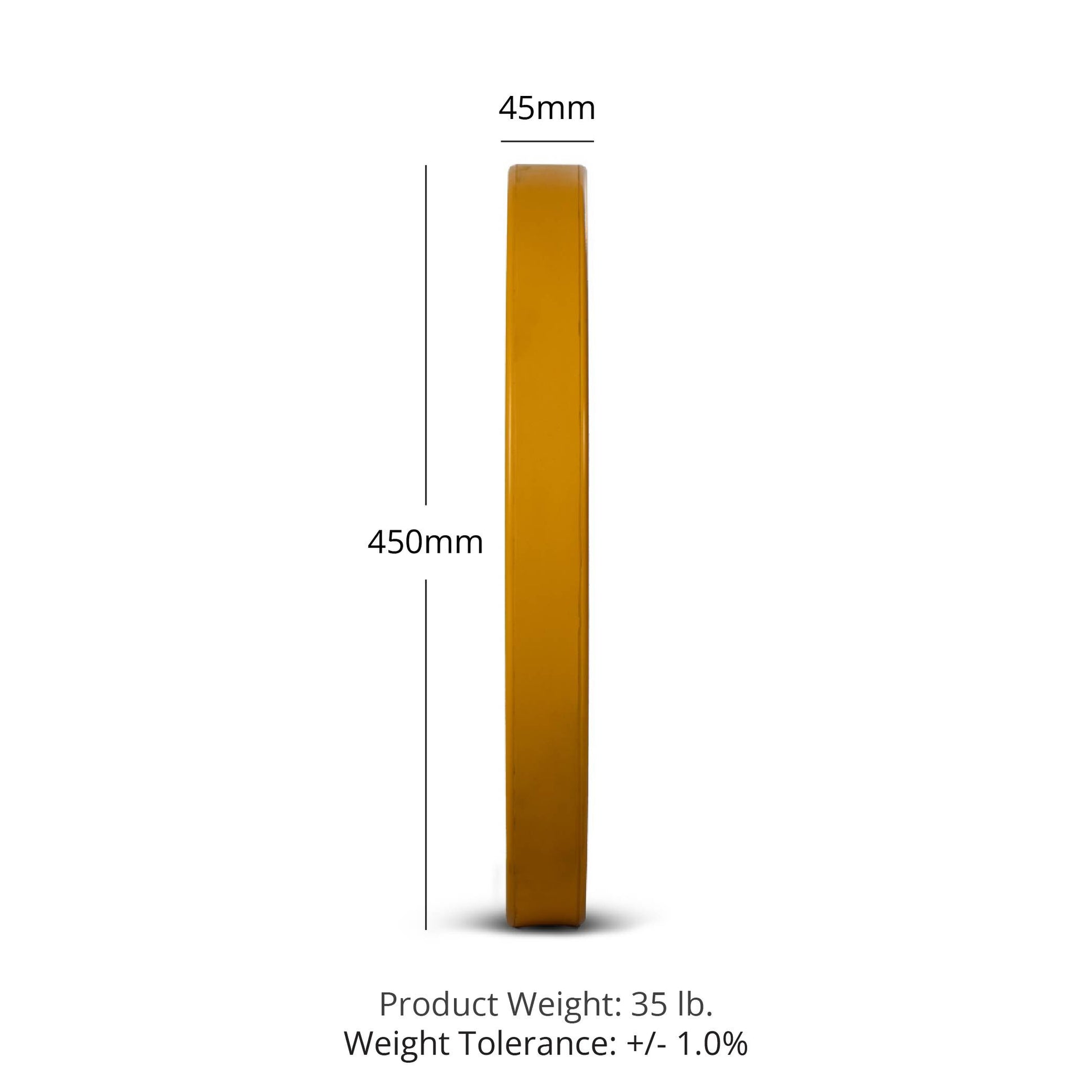 The Elite Competition Bumper Plates are designed to meet strict regulations for weight, durability, and performance to IWF standards for accuracy in competition settings. They feature easy-to-read weight indicators for quick adjustments and are available in pairs of 10 and 25 LB and sold individually in 35, 45, and 55 LB.