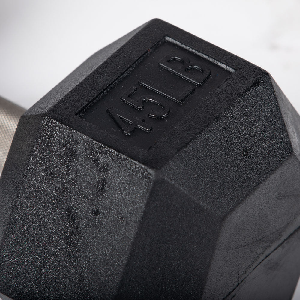 - Black Rubber Hexagonal Heads with embossed weight indications