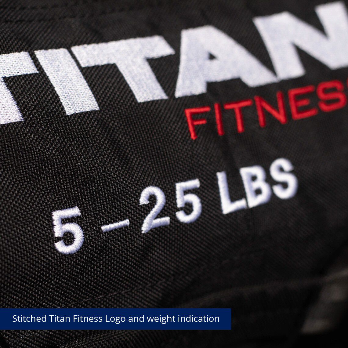 - Stitched Titan Fitness Logo and weight indication