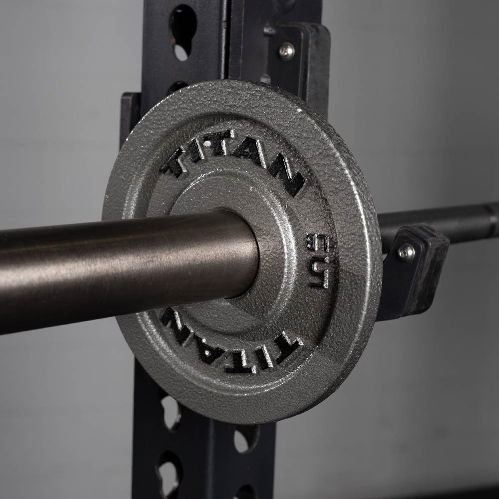 Unleash your inner TITAN with the Cast Iron Olympic Plates, crafted with a high-quality classic silver hammered design. Each plate features a 50.6mm collar opening, dual raised TITAN logos, and LB weight indications. With a simple and clean look, these highly durable plates are a staple for any home or garage gym and are ready for you to max out your next PR.
