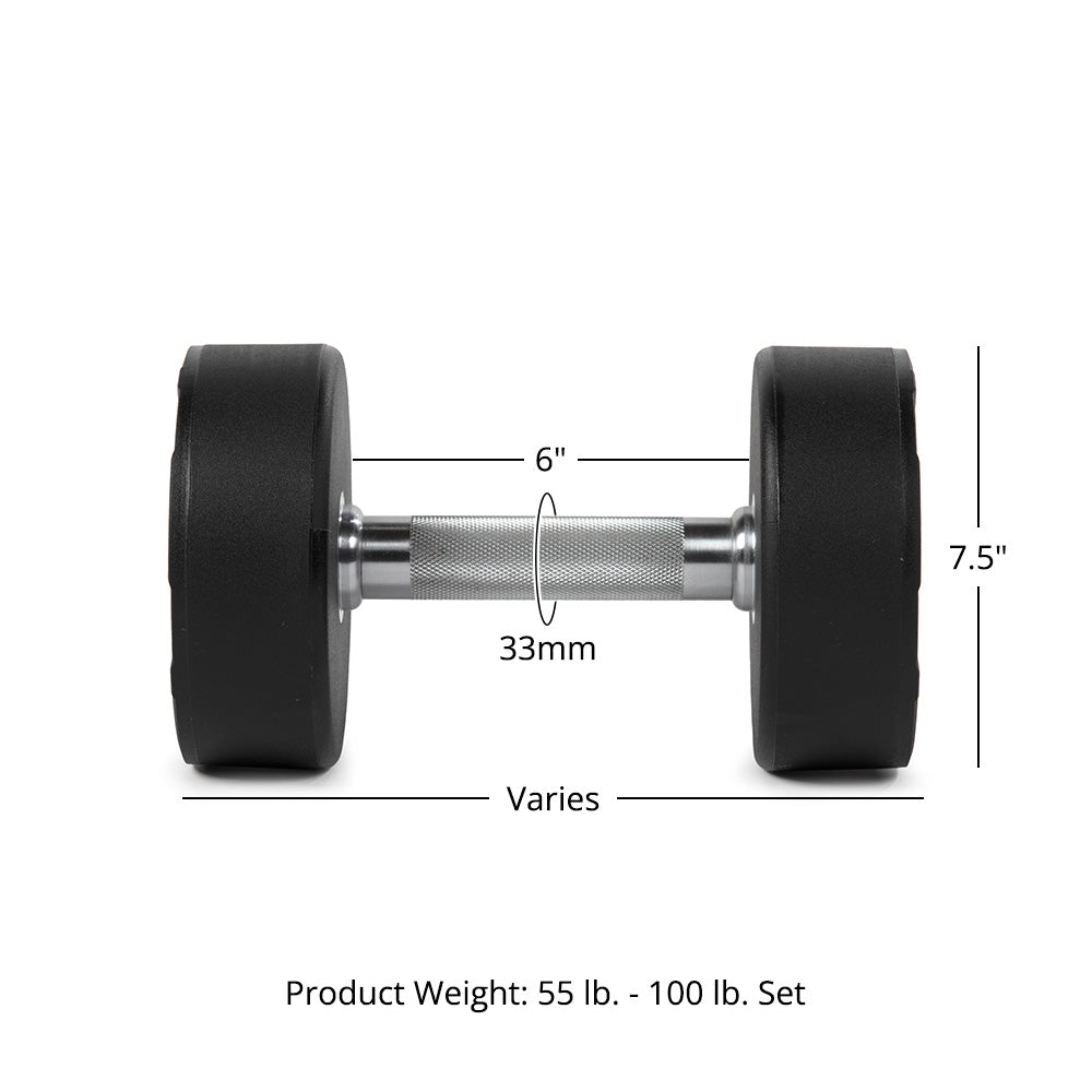 55 LB - 100 LB Set Round Urethane Dumbbells