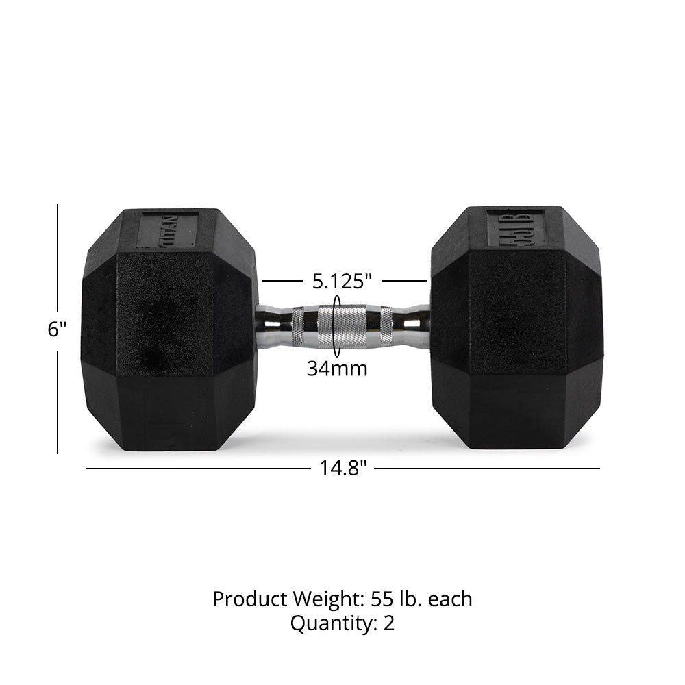 - 55 LB Pair Rubber Hex Dumbbells