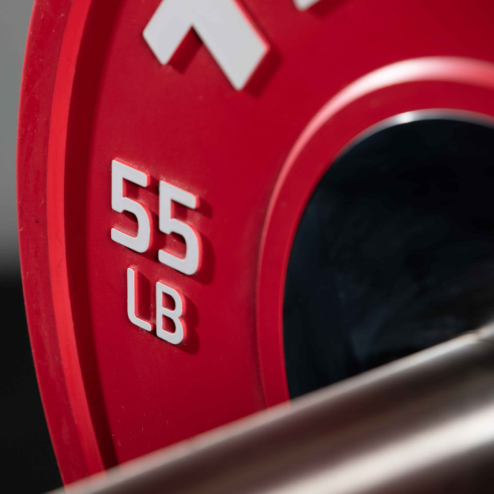 The Elite Competition Bumper Plates are designed to meet strict regulations for weight, durability, and performance to IWF standards for accuracy in competition settings. They feature easy-to-read weight indicators for quick adjustments and are available in pairs of 10 and 25 LB and sold individually in 35, 45, and 55 LB.