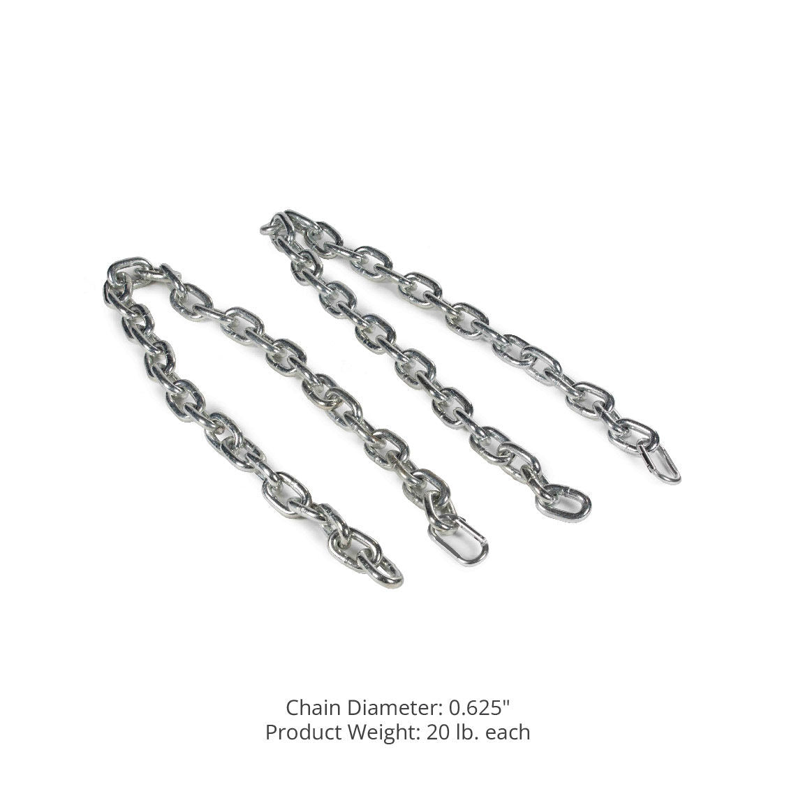 The 6-Foot Heavy-Duty Chains are the perfect addition to help you hit a new personal record. Featuring a pair of 5/8-inch chains with carabiners, this chain kit allows you to add a level of difficulty to the peak of your lift! Place these chains on your barbell for deadlifts, back squats, or bench press, and finally push past that plateau!