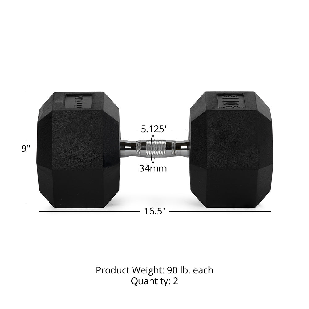 - 90 LB Pair Rubber Hex Dumbbells