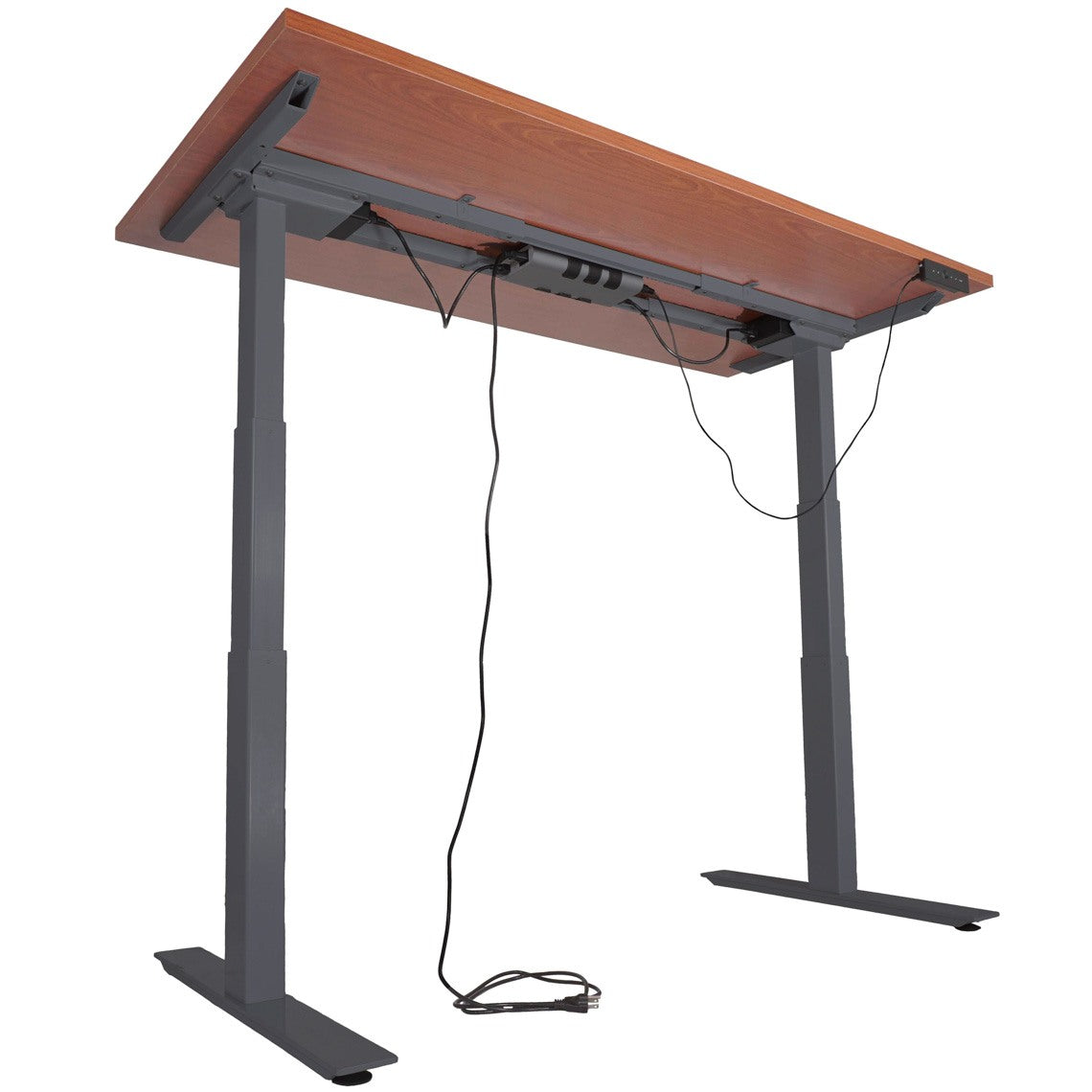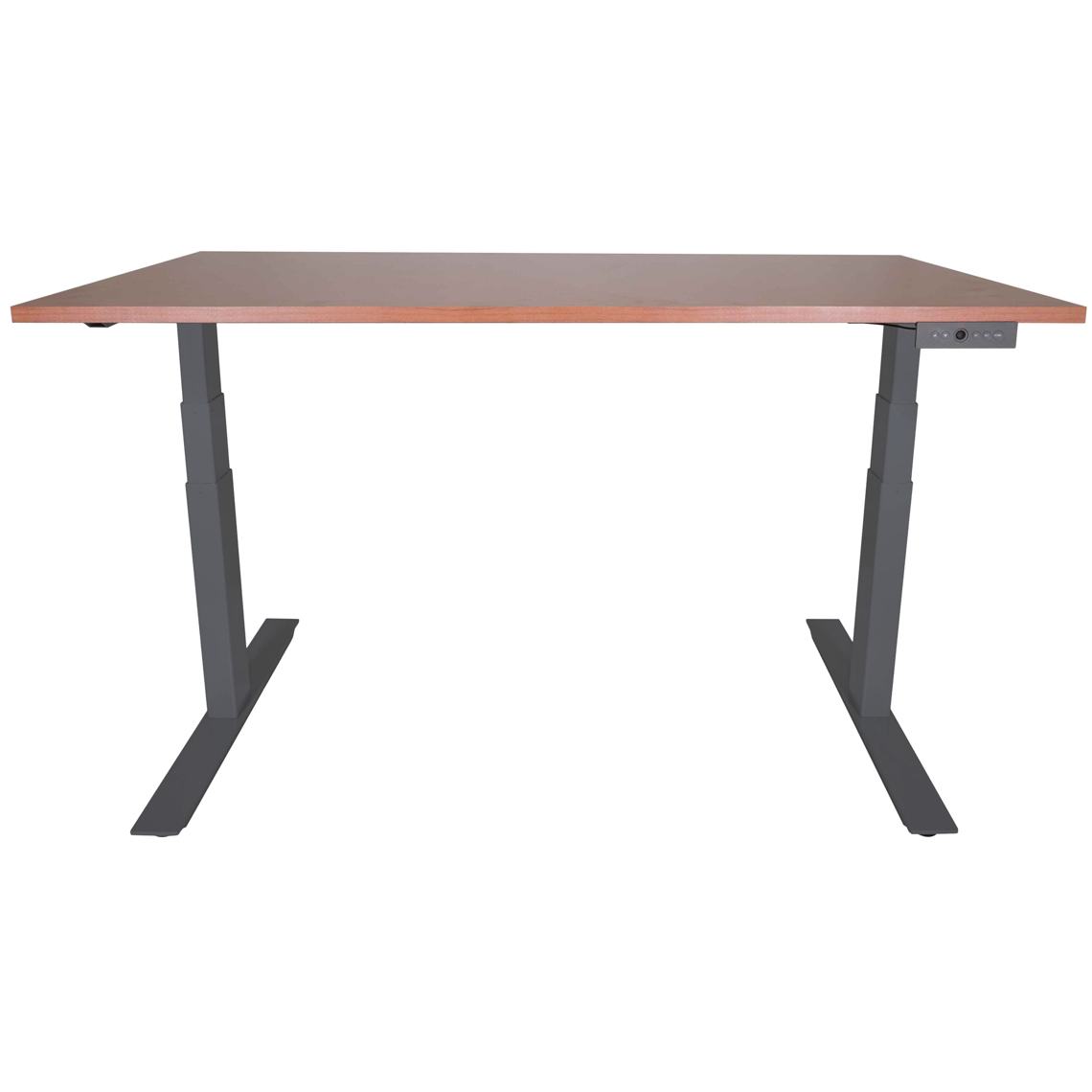 Being productive and healthy at work can be tough and exhausting! With our A6 electric adjustable desks, you can use the electric touch memory handset to adjust the height from 24.4" to 50" tall. The motor has 2 programmable memory settings, 1 preprogrammed home setting, and up/down manual adjustment buttons. Ultra-quiet electric motor will not disturb other people and is protected from overheating and overloading, but a power source is required. The surfaces are large, solid, and professional complements to your office; the material is high-quality dense laminated medium density fiberboard (MDF), and the Cherry wood finish is pitted and scratch-resistant. We carry a full line of standing desks, standing desk frames, and desk risers to set on top of a regular desk, as well as a wide variety of fitness products.