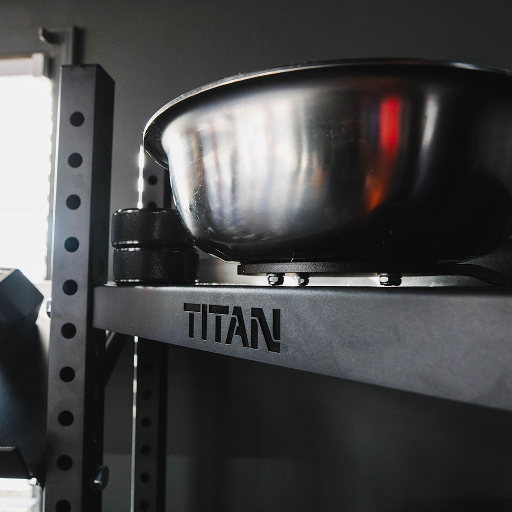 Sold individually, this corner storage rack enhances the storage capabilities of your Elite Series Mass Storage System, providing extra space for gym accessories and essentials like speakers, small accessory baskets, weight belts, swing bags, and more.
