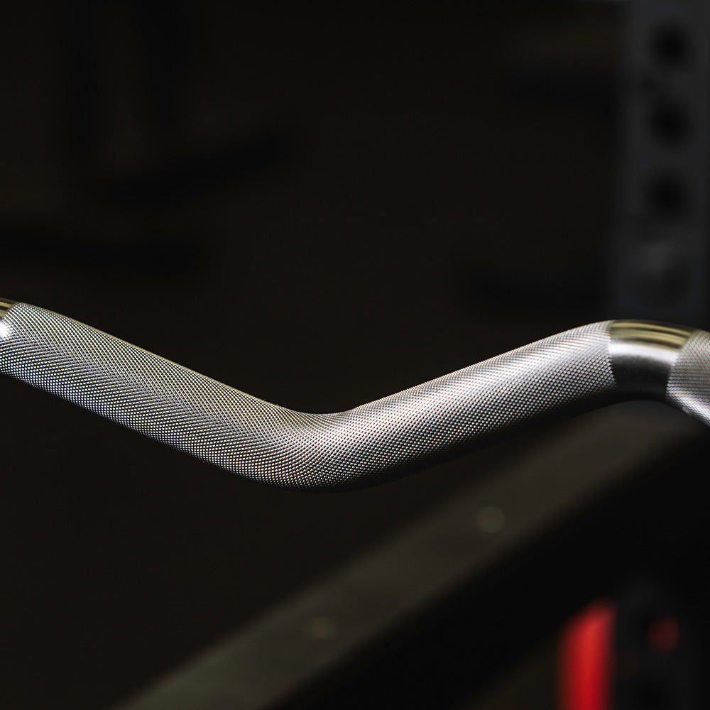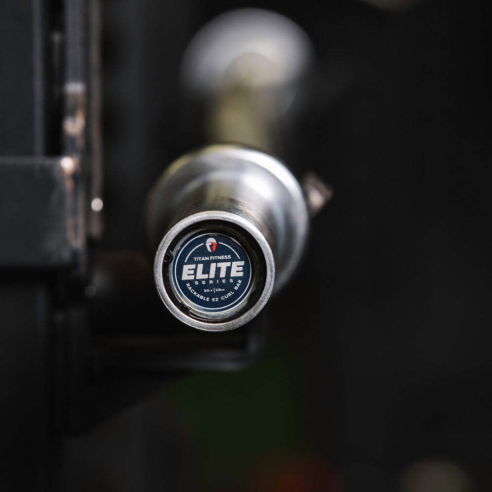 Built for intense workouts, the Elite Series Rackable EZ Curl Bar handles up to 400 LB for building serious strength with bicep curls, skull crushers, and isolation exercises. Ergonomic angled grips reduce wrist and elbow strain and allow for wide or narrow hand placement for targeted muscle activation. Crafted with volcanic knurl marks and center knurling, it has a comfortable, no-slip 28mm grip for easier curls - and 8.75" of loadable length on each sleeve. Equipped with bronze bushings, this bar delivers consistent, controlled sleeve rotations for easier lifts and less wear on your plates and bar. Built with 110,000 PSI tensile strength steel and a corrosion-resistant chrome finish, this bar easily handles demanding workouts without bending or warping.