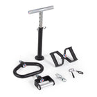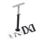 The T-Bell Series is a versatile plate-loaded training device used to perform elevated exercises like Straddle Lifts, Sumo Squats, Romanian Deadlifts, and Bent-Over-Rows. This durable, pin-style shaft fits Olympic-style weight plates and comes with a high-tension custom spring clip to secure your plates. Perform multiple activities with the addition of five interchangeable handles. Once the weight plates are loaded, insert the T- Handle, X- Handle, C-Handle, D-Handle, or K-Handle into the hex-shaped loading pin and lock it in place with the provided safety pin. The Prone Grip T-Handle is designed with five holes spaced 1-inches apart to quickly adjust the height of the handle to better suit each athlete. The Neutral Grip X-Handle features dual knurled grip handles, while the C-Handle or Carabiner Handle will connect to any grip-based attachment for various lifting techniques. The Neutral Grip D-Handle features a single knurled grip handle, while the Kettlebell or K-Handle features a smooth, wide-loop handle. Enhance your strength, endurance, and performance by building core strength and posterior muscles with the T-Bell Series.