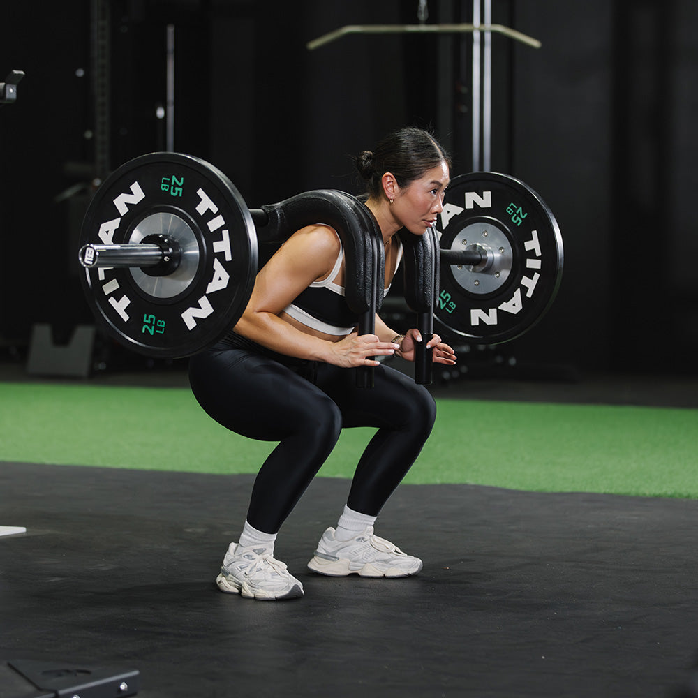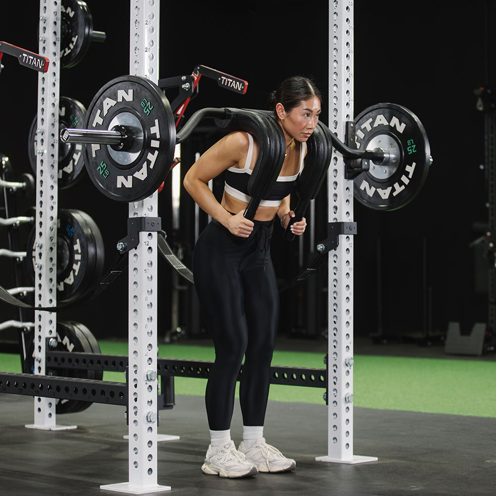 Built with a 45-degree drop, this bar mimics a low bar squat to eliminate strain and lock in stability. By stabilizing your center of gravity, it minimizes stress on your knees and spine so you can keep squatting pain-free.