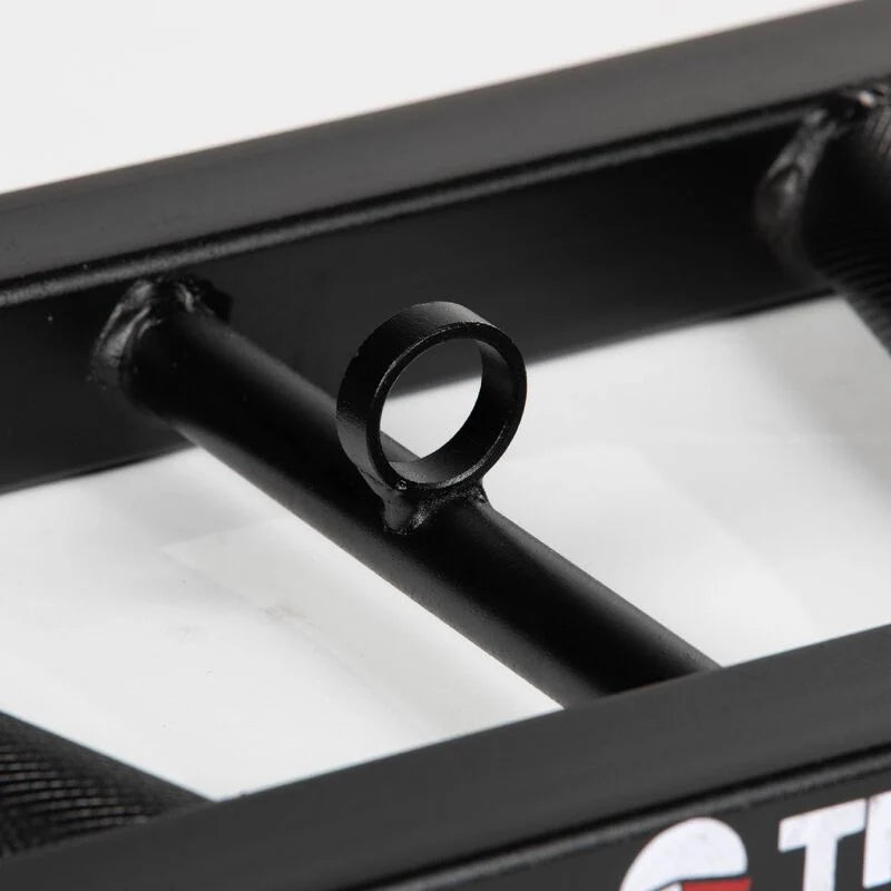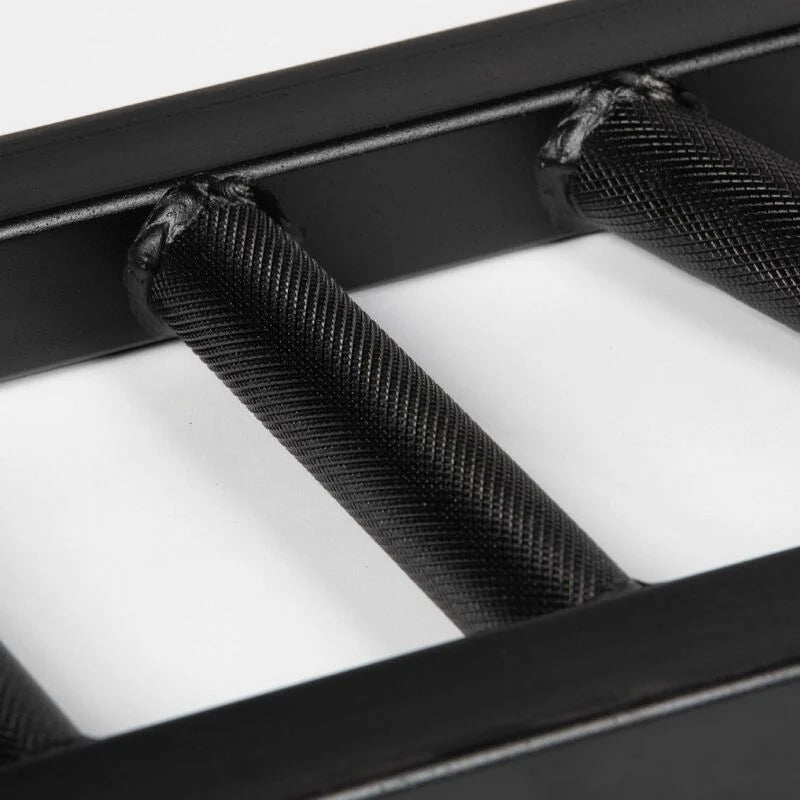 The Multi-Grip Cable Attachment will expand your Lat Tower workout with a single angled set and three neutral handle placement options in one excellent add-on unit. This unique attachment incorporates 30mm grips strategically spaced at intervals of 12.25-in., 20-in., 30-in., and 39.25-in., effectively targeting multiple muscle groups. Each grip is knurled with a medium diamond texture, ensuring an optimal hold during exercises like seated cable rows, overhead lat pulldowns, and more. Connecting the attachment is a breeze, thanks to the carabiner mechanism. Simply select your desired grip position and engage in exercises to enhance your biceps, triceps, back muscles, and overall grip strength. Unleash the potential of your Lat Tower workout with this versatile Multi-Grip Cable Attachment.