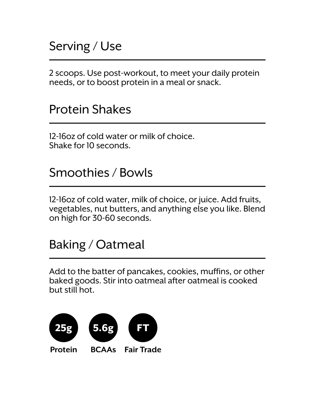 Post-workout shakes, smoothies, baking & between meals to meet protein goals.