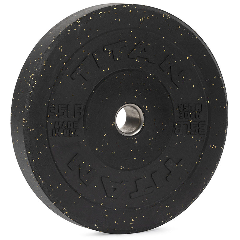 100% made in the USA, these crumb rubber bumper plates are built with a seriously strong combination of recycled vulcanized rubber and a proprietary urethane binder for exceptional durability. Each plate features a 2" stainless-steel collar insert for added strength and longevity.