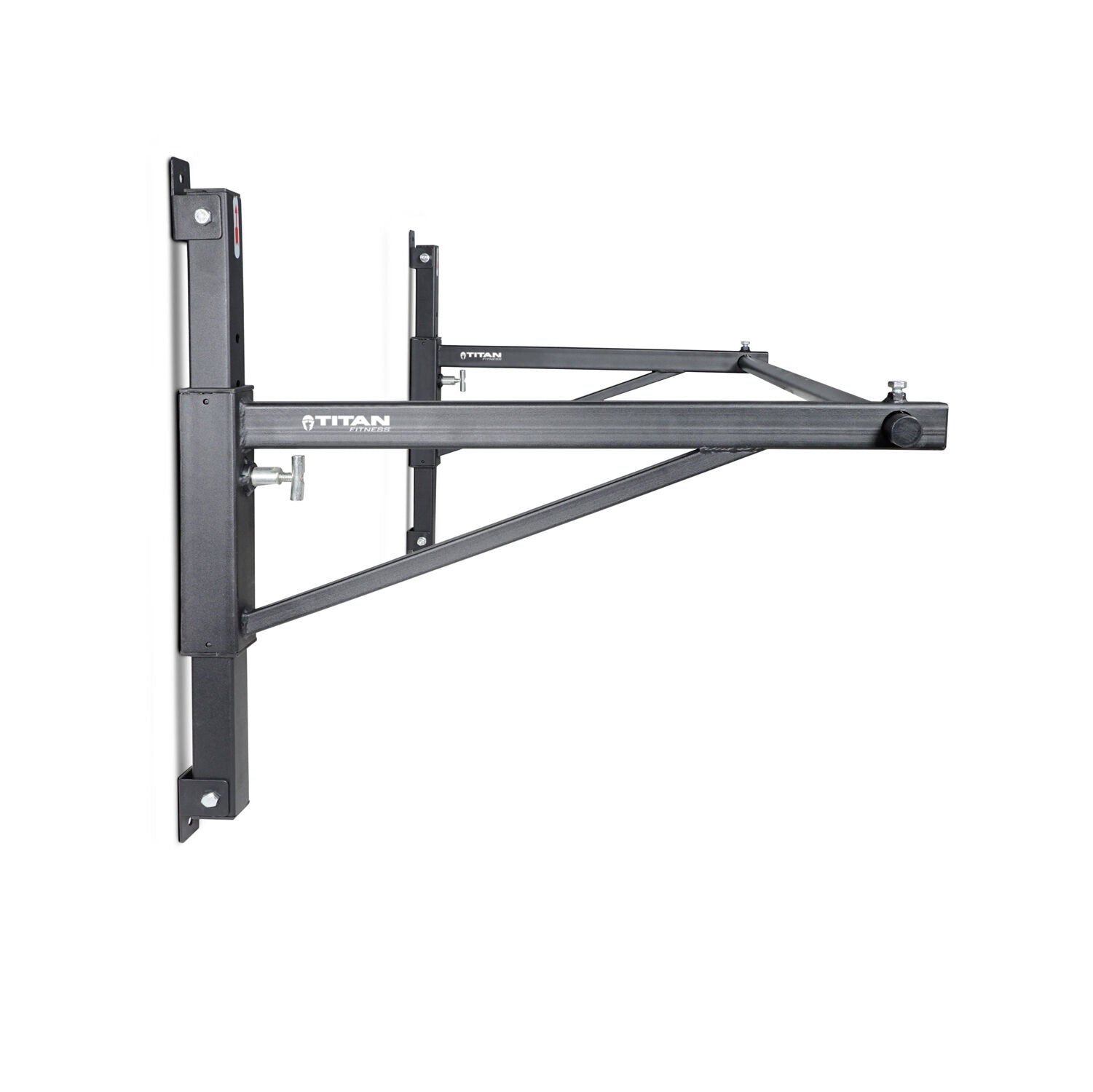 The Titan Fitness Adjustable Pull-Up Bar is sturdy, durable, and well-made, as it is solid steel. It is the right width for mounting onto regular US wall studs at 48-inches apart and spreads the weight evenly. This wall-mounted pull-up bar is easily adjustable to 5 different heights for people of different sizes and abilities, but be careful, as the bar is heavy. Save your doors by mounting this on your wall instead of using an over-the-door variety!
