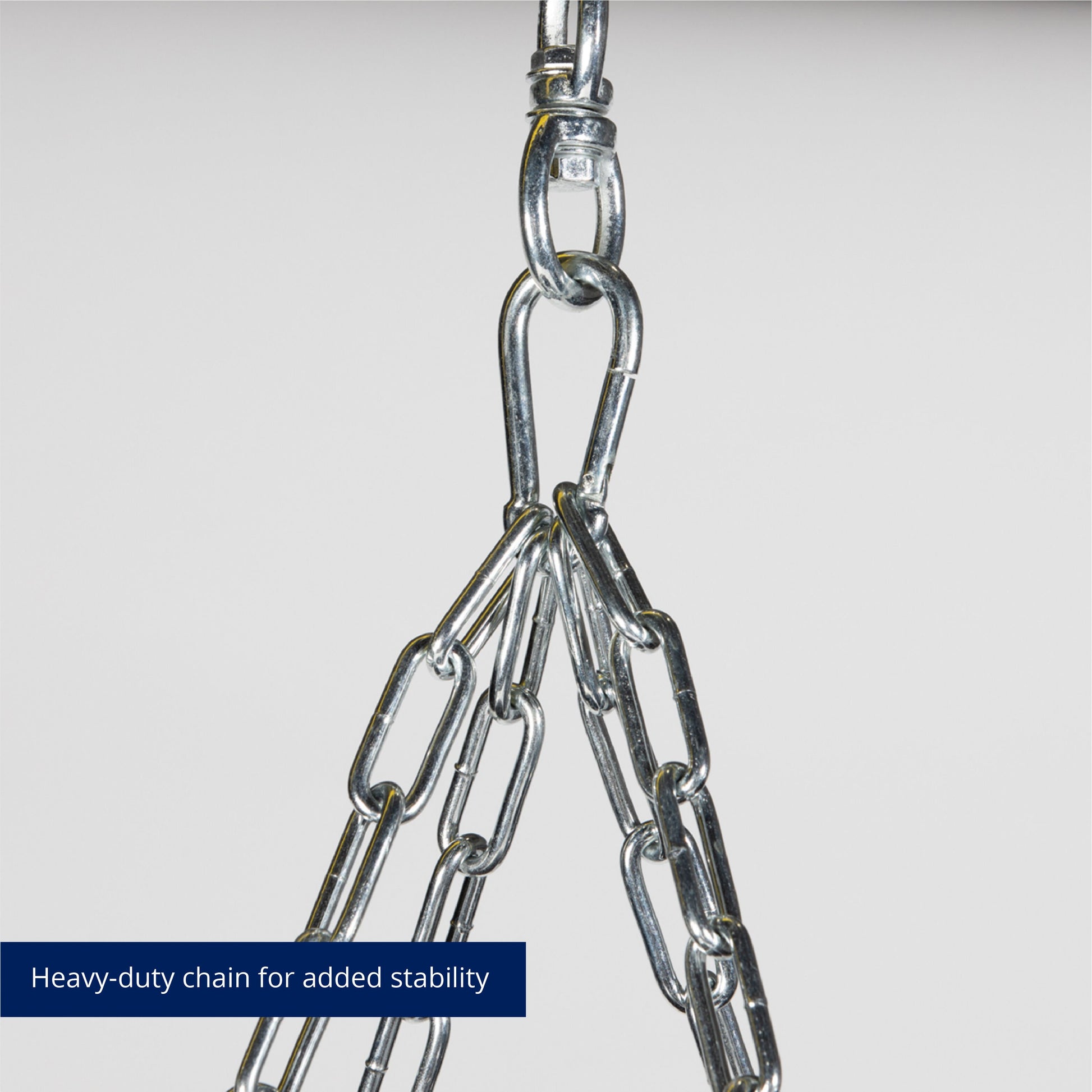 DURABLE DESIGN: This powerful heavy bag can last for years with proper care and use, and comes with thick straps to securely hold it in place. The heavy-duty chain adds to this stability, and helps keep your workout safe and efficient.