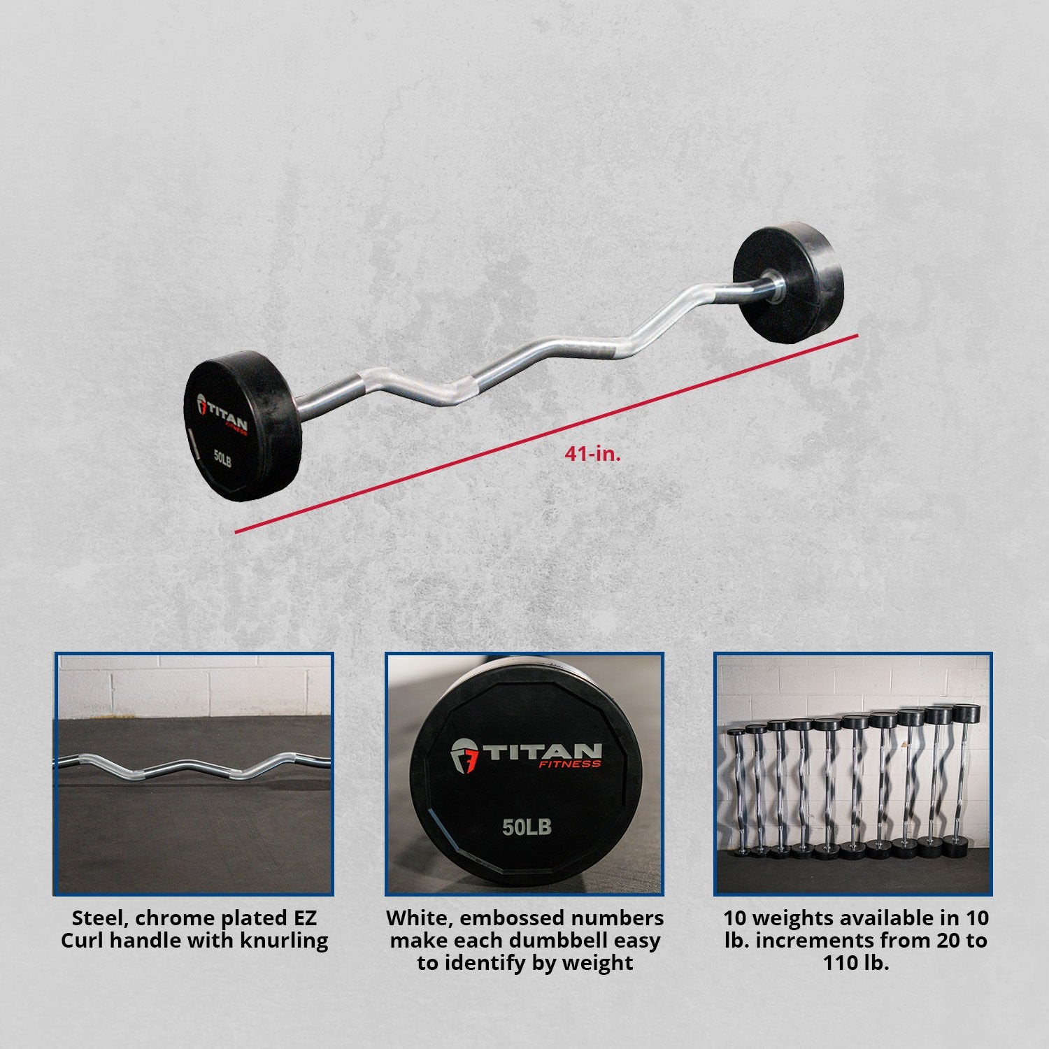 Scratch and Dent - Rubber Fixed Barbell | EZ Curl | 50 LB - FINAL SALE
