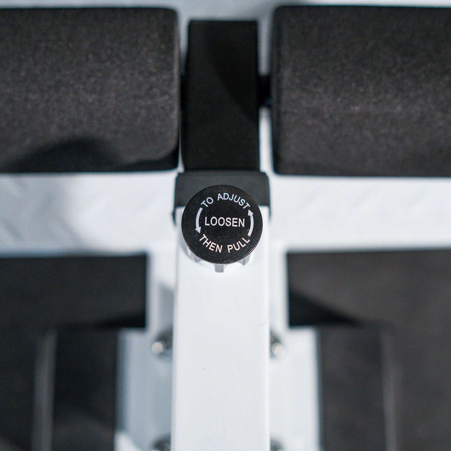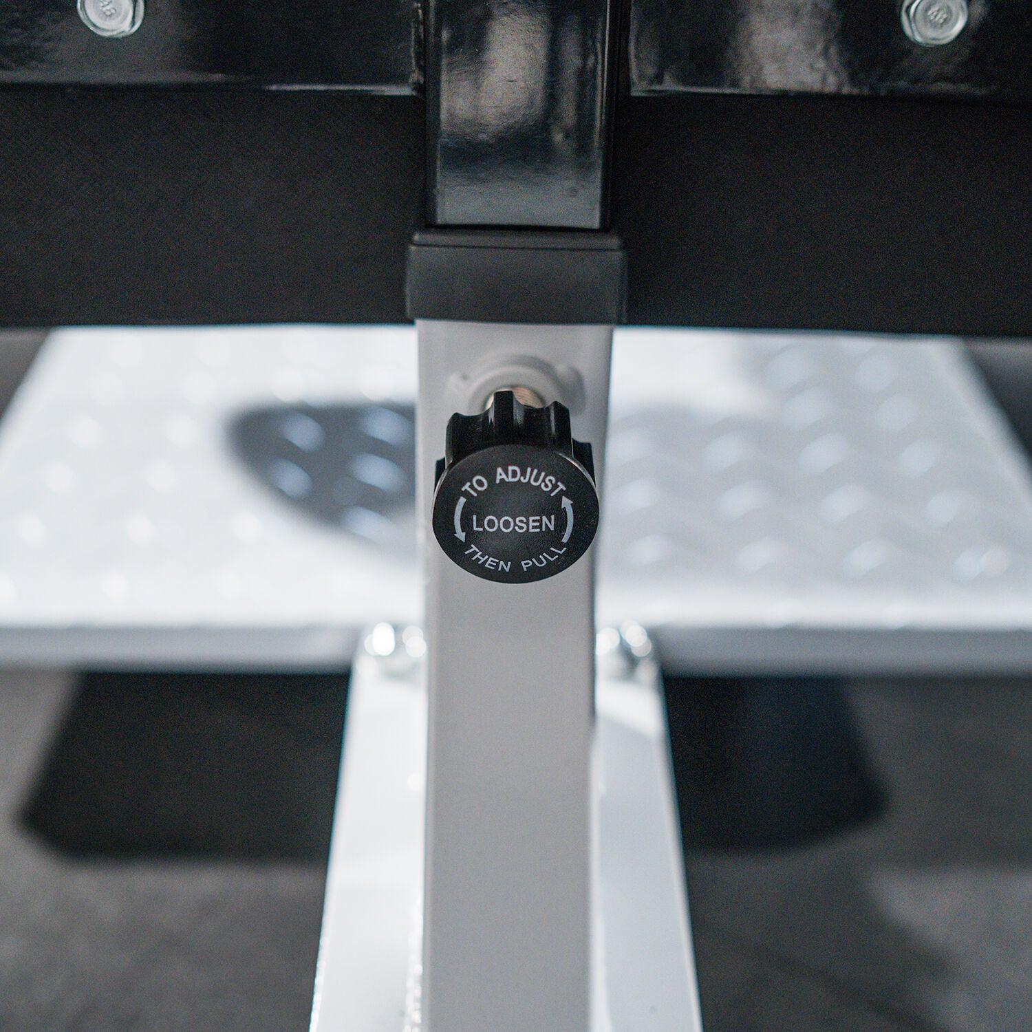 Strengthen your quads, glutes, and core with the Titan Sissy Squat Machine. From the diamond plated foot plate, high quality padding, adjustable calf and foot pads, and a low footprint this is a must have for any home or commercial gym.