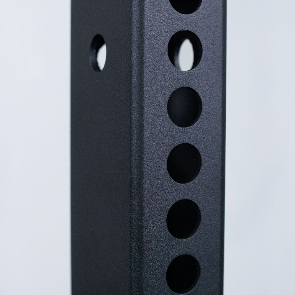 The T-3 Series Power Rack, designed fully customizable, offers your choice in 82" and 91" models to fit your gym needs. These bolt-together racks feature 2" x 3" 11-gauge square steel uprights with Westside hole spacing through the bench and clean pull zone, 2" spacing above and below, 6" side hole spacing throughout entire upright, and your choice in a custom color powder-coated finish. Additionally, the power rack comes standard with a 1.25" pull-up bar, a 2" fat pull-up bar, and two reinforced J-Hooks. Take your workouts even further and add more variety by taking advantage of our Power Rack Accessories, such as Pin and Pipe Safeties, Adjustable Lever Arms, Roller J-Hooks, and more. Customizable, durable, and exceptionally functional, the T-3 Series Power Rack is the perfect centerpiece in building out your home or garage gym.