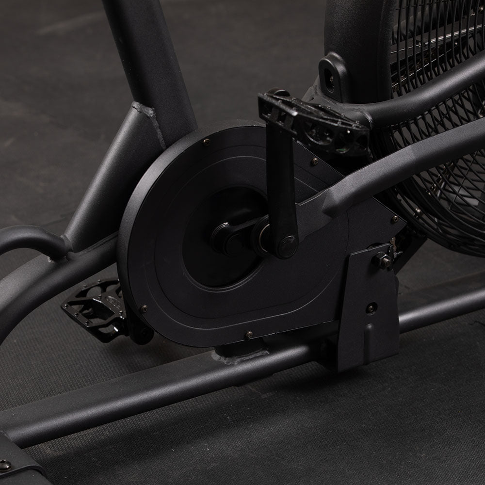 The Titan Fitness® Fan Bike is bigger and brawnier made with 11 LB of heavy-gauge steel to help take your workout to the next level. This bike is integrated with sealed cartridge bearings in every pivot, reinforced pedals, and cranks, and is fashioned around a heavy-duty steel frame with a powder-coated finish. Additionally, the Fan Bike features a high contrast LCD console tailored to fit your specific goals. From endurance and stamina training to HIIT and Tabata — choose from a range of interval training programs for a total body workout. This Fan Bike’s compact design makes it easy to use anywhere and with durable 10-inch turf tires, moving this bike is easy across any terrain. Plus, it’s loaded with all the extras that come standard: fan guard, water bottle holder, phone holder, and a built-in back handle for easy maneuverability.