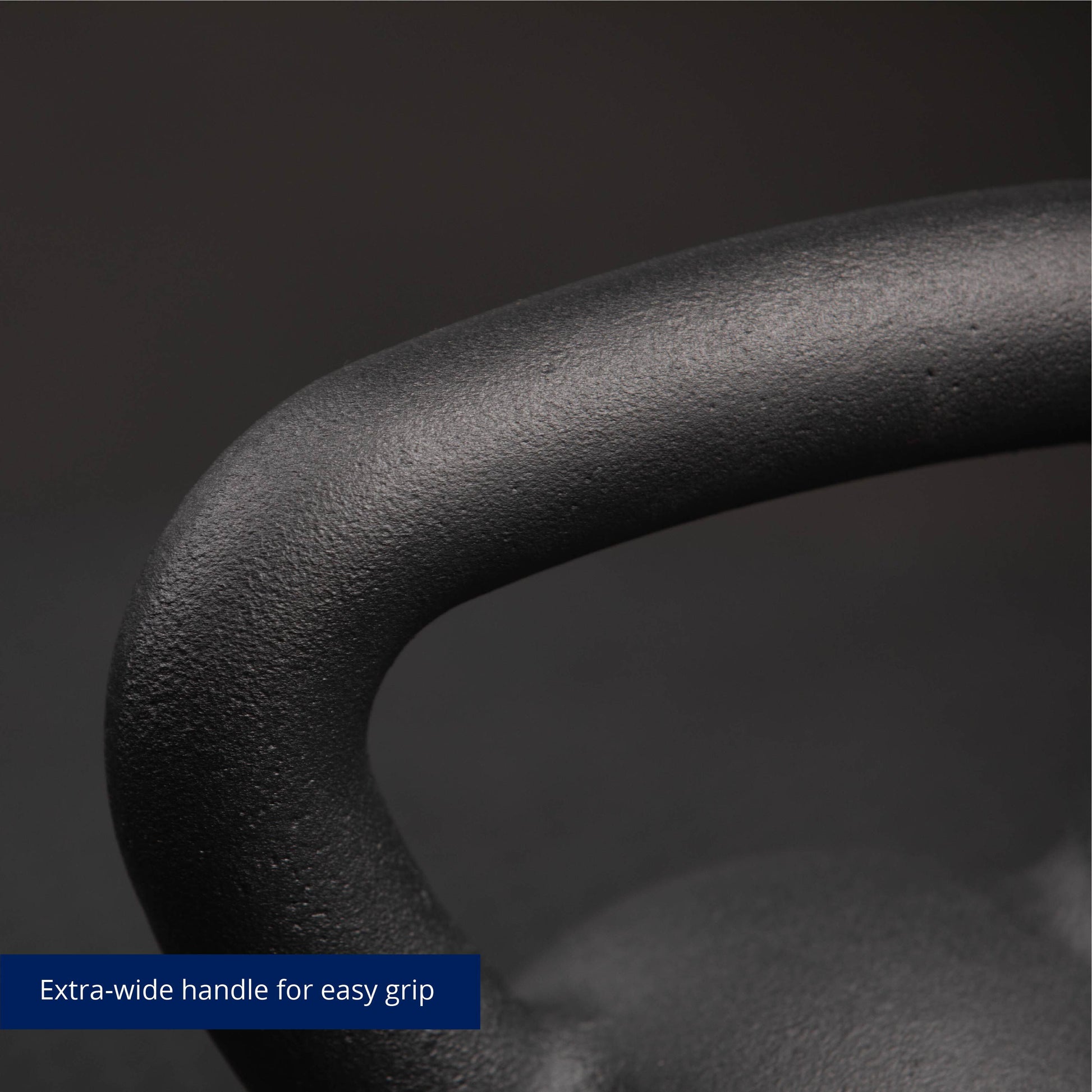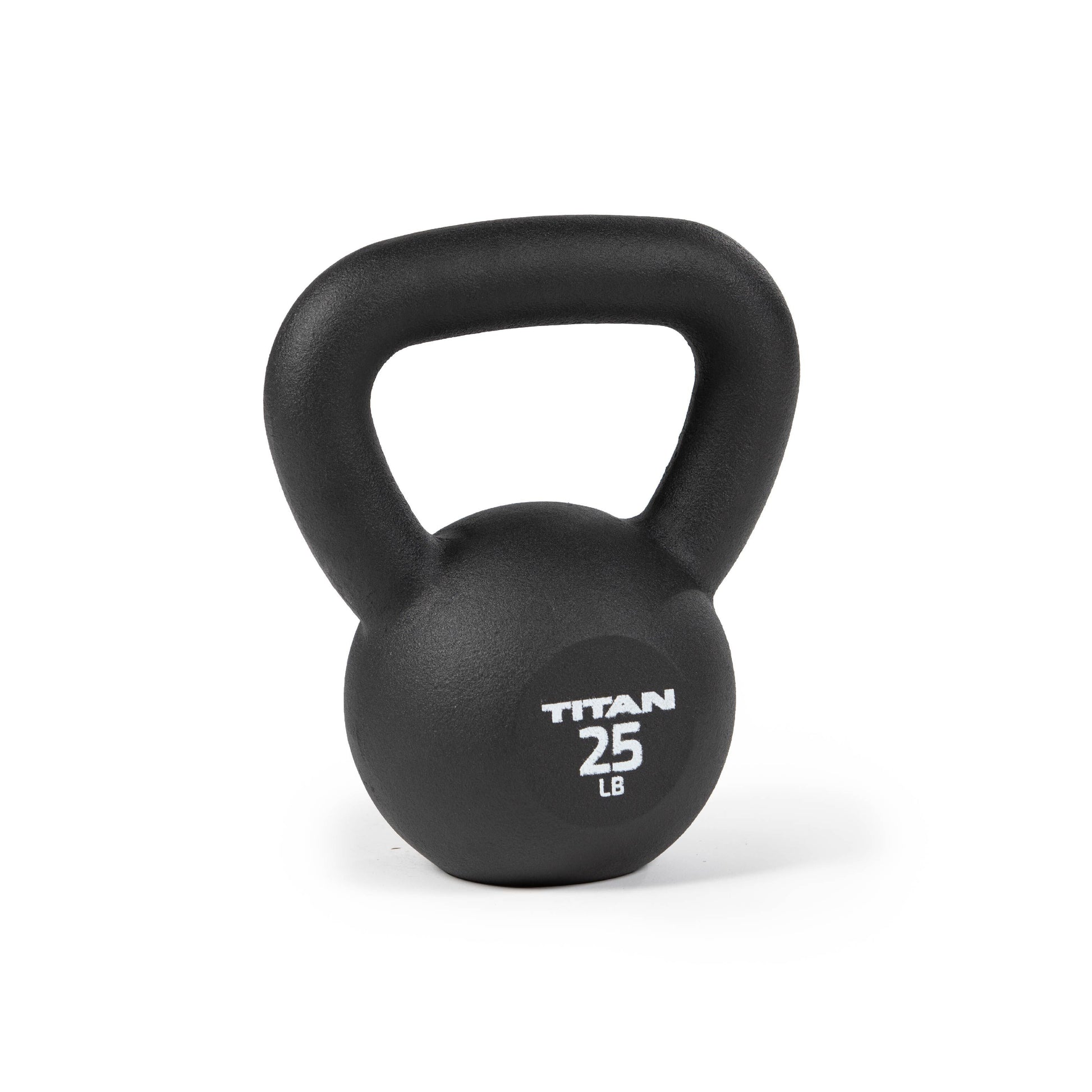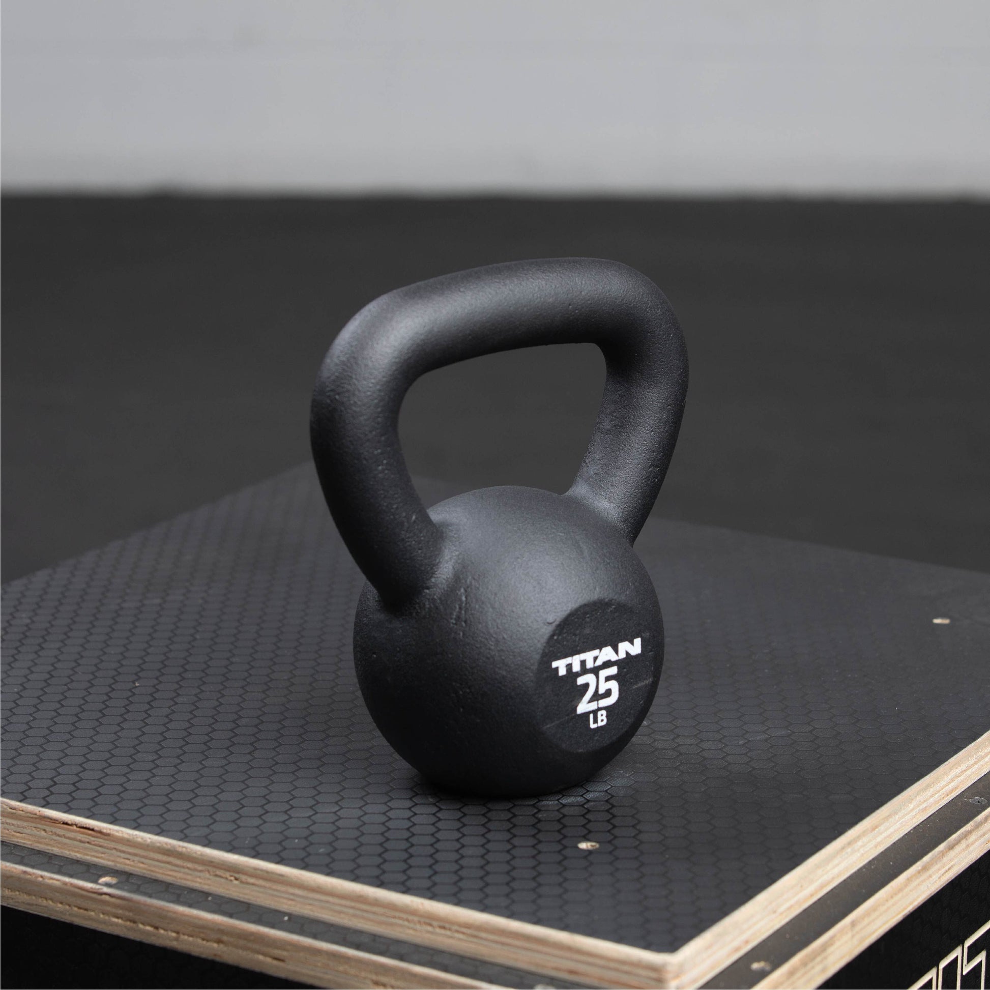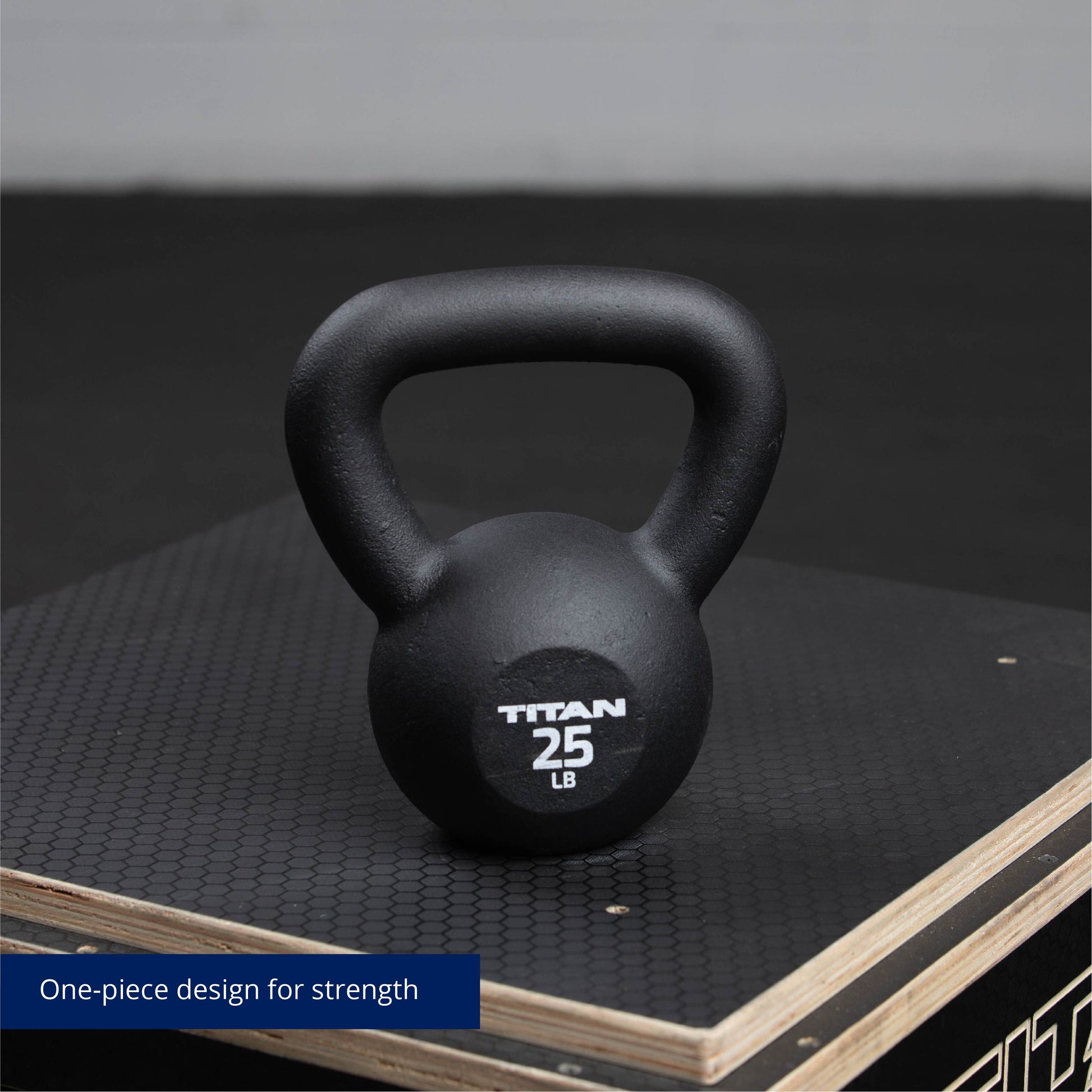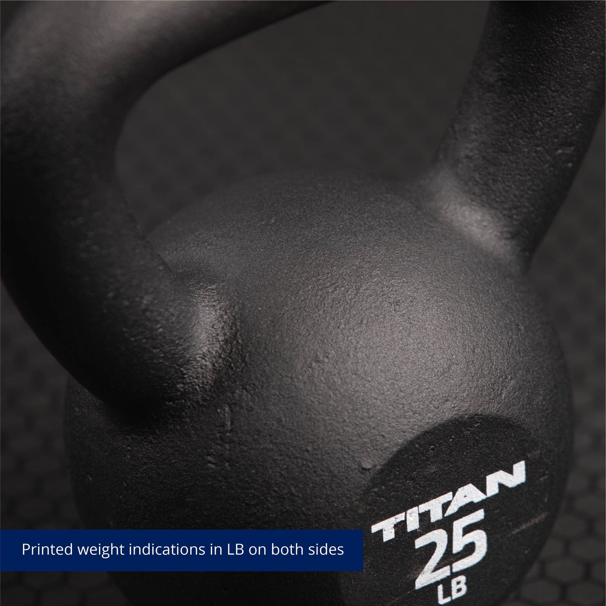 The Cast Iron Kettlebells work as weight resistance and counterbalance for a variety of upper and lower-body exercises. Ranging from 5 LB up to 100 LB, these single, solid piece casts are machined with a flat base that allows for push-ups and no wobbling. Constructed with a durable, smooth wide-loop handle and a round profile with the TITAN logo and LB indication printed on both sides. These kettlebells are an ideal purchase for building muscles, enhancing core strength, and improving balance.