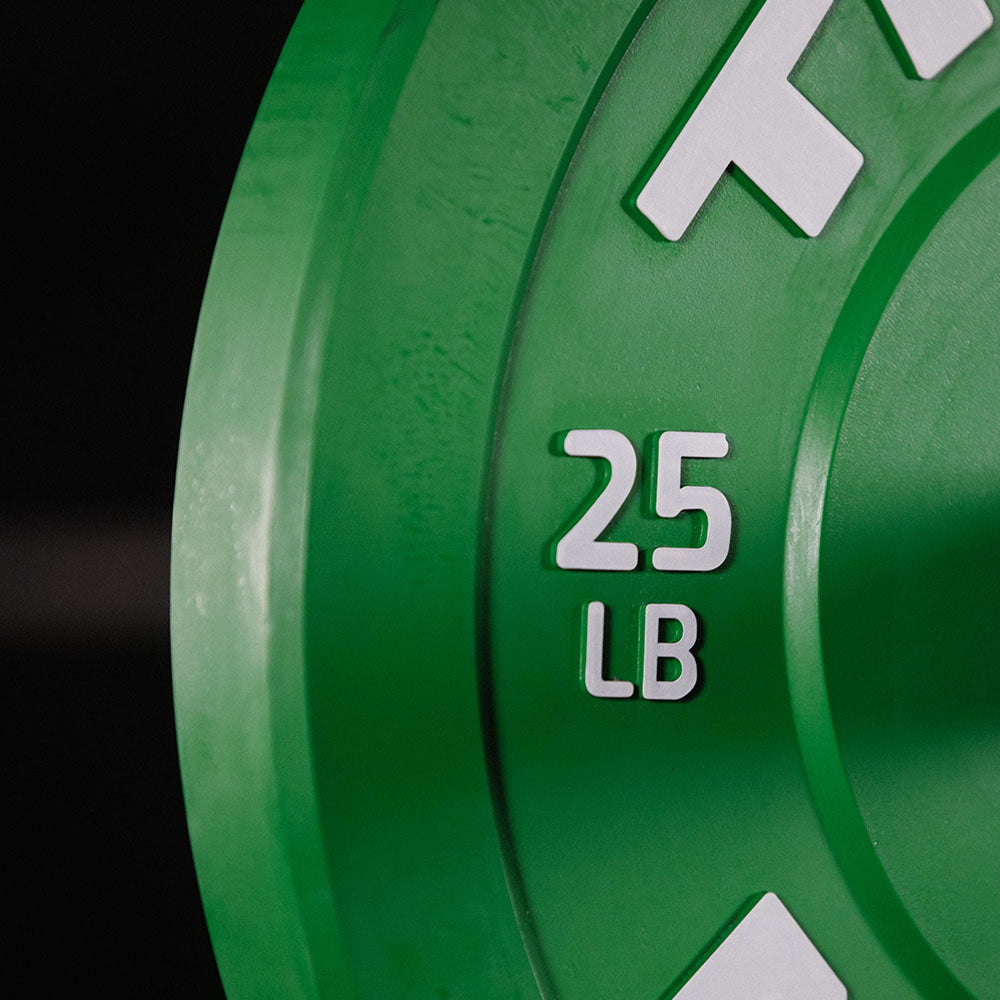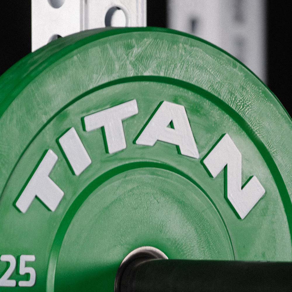 Unleash your inner TITAN with the Economy Rubber Bumper Plates, color-coded to make it easier to organize and find the correct plate at a glance. Crafted from durable, solid rubber with a 50.6mm weighted steel-lined collar that reinforces the plates for training that involves dropping plates from overhead or shoulder height. Each plate features dual raised TITAN logos, LB weight indications, a raised plate lip, and is designed with a low bounce rate for more control over the barbell when it hits the ground. These easy to identify colored bumper plates are extremely durable, perfect for use in home gyms, and ready for you to max out your next PR.