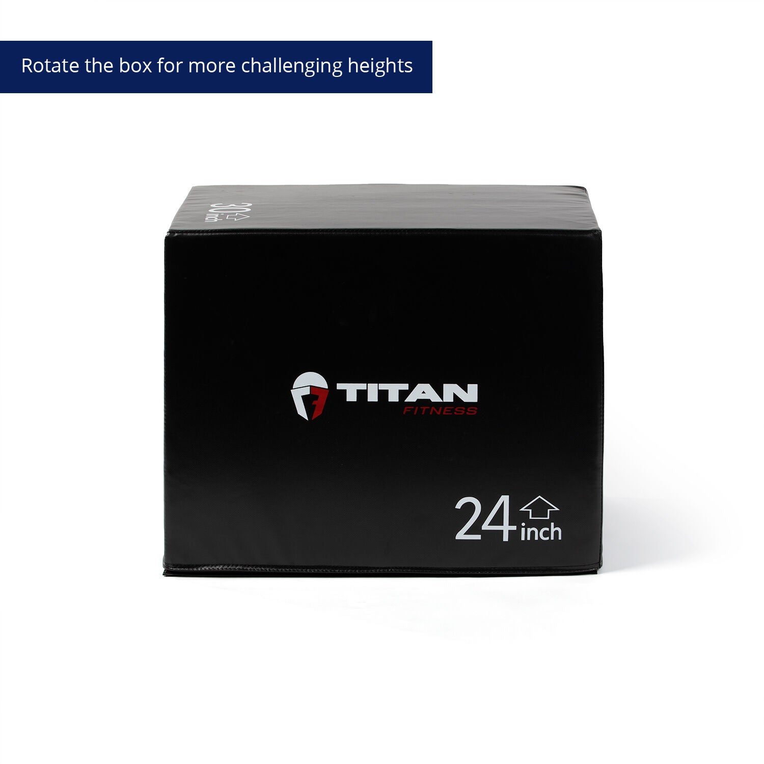 Looking for one of the best pieces of workout equipment for aerobic exercise on the market? Your search ends and your extreme workout begins with the Titan Fitness 3-in-1 Portable Foam Plyometric Box. The Titan Fitness pro-duty Foam Plyometric Box is the versatile equipment you need to maximize your box jumps, box push-ups, dips, step ups, and plenty of other creative exercises. Use it in your cross training workouts, your garage, or the gym to get an aerobic exercise like never before. If the workouts are getting too easy on the 20-in. side, simply rotate the box to add 4-in. – 10-in.. This forces you to jump higher and burn more calories while improving your vertical! These boxes are constructed from high-density foam and are built to last through those long hours of fitness training. With a 350-pound weight limit, you can be confident that when you land your jump, this box will support you. Specifically designed with a slip-free surface, you can have the safety and stability you need in every single jump. No more banging your shins against a hard wooden edge! When you order our product, you won’t have to spend hours of our valuable time sorting through parts and assembly. The Titan plyometric box comes ready to use right out of the packaging. Try out our professional workout equipment for yourself and witness the change in your physique, your vertical, and your overall health. Step up your game and get ready to tone your body with the Titan Fitness plyometric box. At Titan, our first priority is to give our customers the service they deserve. We’ve also made communication a key concept. That means that we don’t just pass your buck when you place your order. If you have questions or concerns along the way, we want to know so that we can help you have the best possible experience.