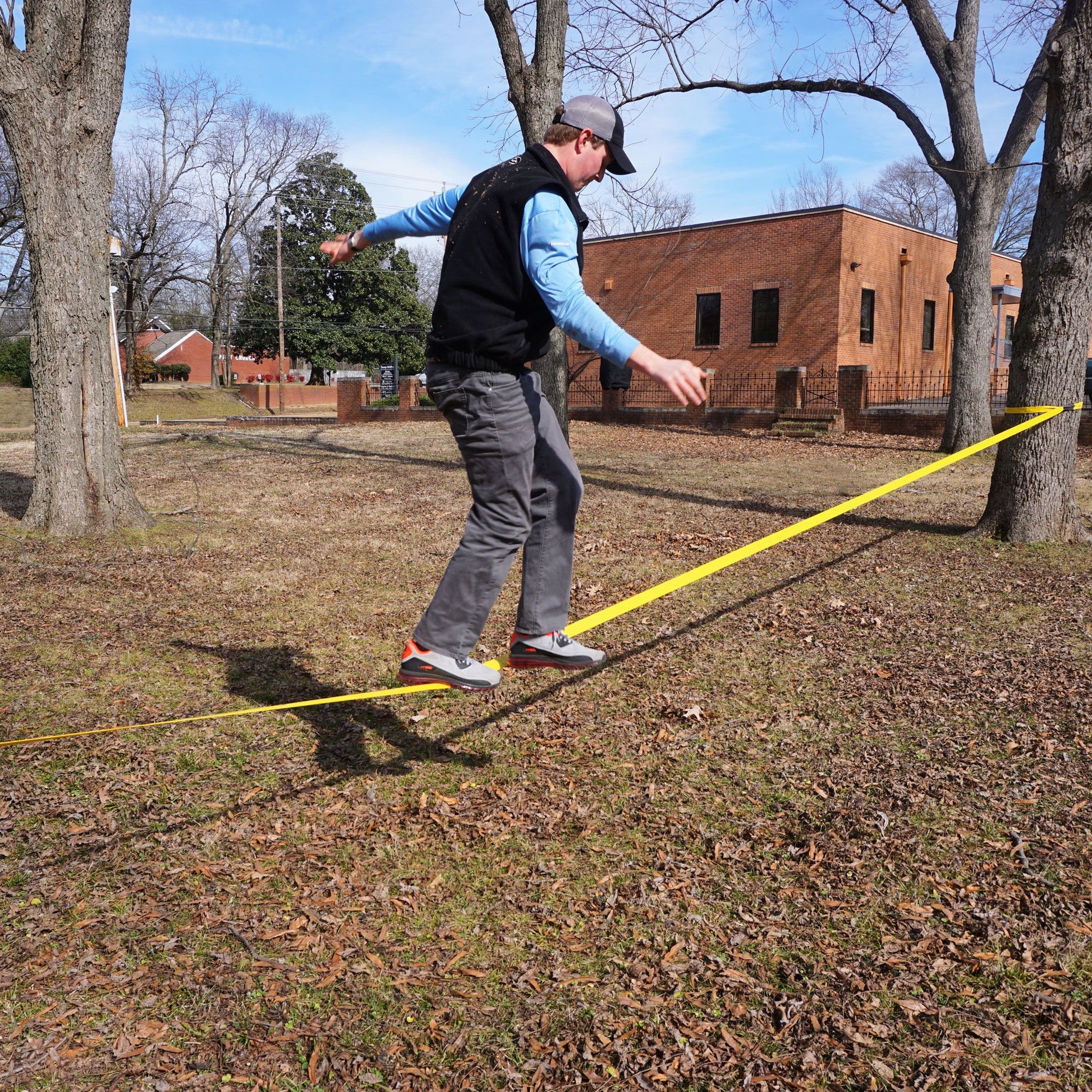 The complete Slack Line kit from Titan Fitness is ready to set up and use right out of the box. This makes for a fun day in the park with friends!