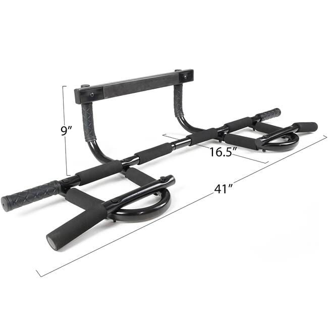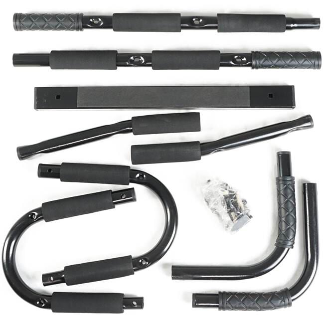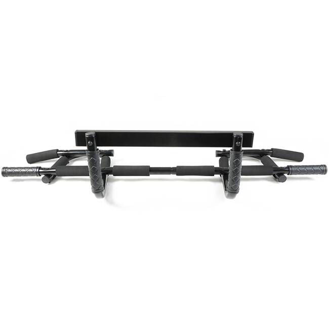 The Titan Fitness Extreme over the door pull-up bar is perfect for doing strength body weight exercises, both on the door and on the floor! With more bars and grips comes greater exercise variety than our standard pull-up bar! For vertical exercises, you can workout your shoulders, biceps, back and tricep muscles with chin-ups, pull-ups, leg-lifts and reverse crunches. When you place it on the floor, you can work out your abs with crunches, your triceps with dips, and your chest with push-ups. The Extreme Titan Fitness pull up bar is easy to assemble, does not require mounting, and is very versatile and affordable!