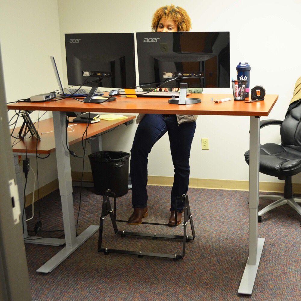Lightly exercise at your desk with the Fidget Foot Pendulum from Titan Fitness™. This stationary unit allows you to exercise one foot at a time in a back in forth motion expelling energy helping you stay focused and stay at your workstation longer without feeling static.