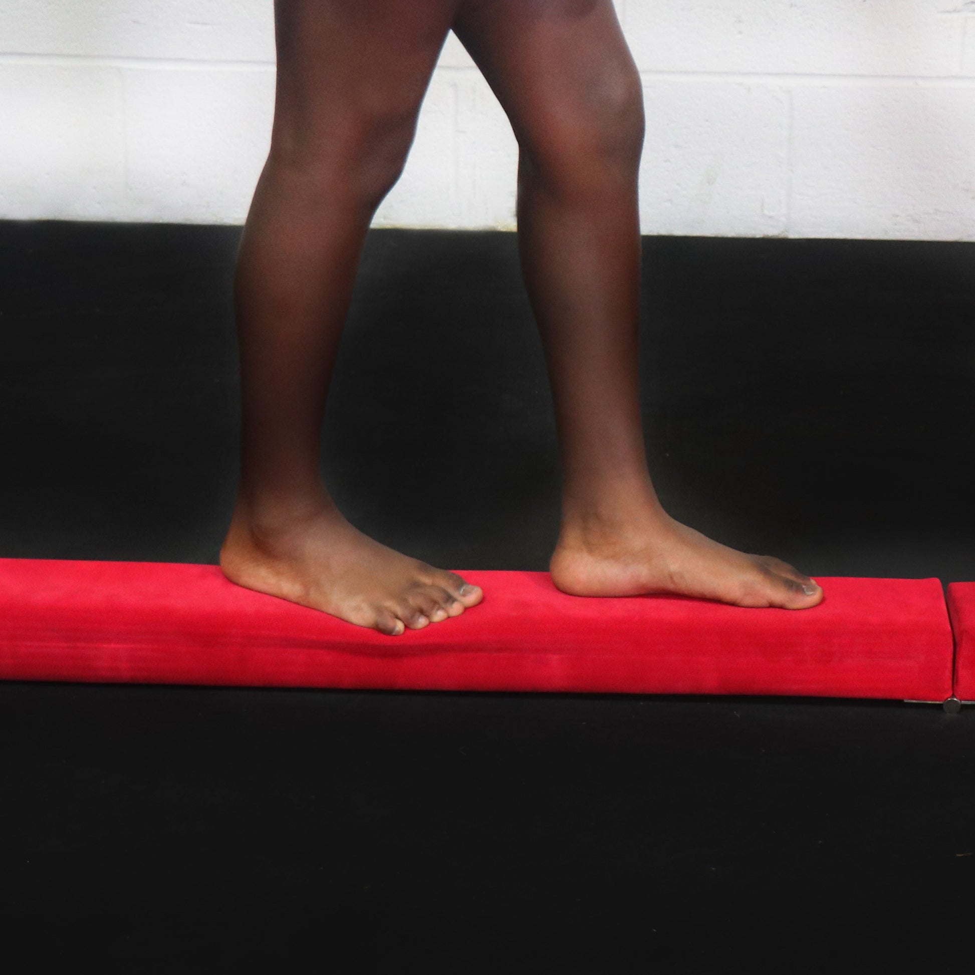 The Titan Jr. Gymnastics Balance Beam is perfect for beginner gymnasts to practice their jumps, leaps, and much more! The 4-in. wide suede surface gives this beam the feel of a competition beam and features a slip-resistant bottom for a secure and stable surface to practice on. This beam also folds in half for easy storage and is light weight enough to easily be taken with you wherever you go.