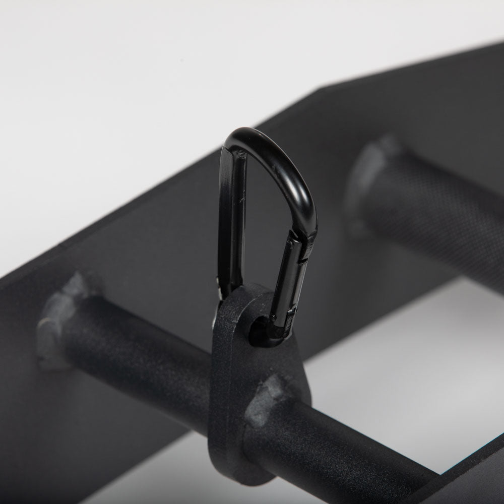 The Multi-Grip Attachment will expand your Lat Tower workout with four neutral handle placement options in one excellent add-on unit. This unique attachment features 30mm grips spaced at 12-in., 23.5-in., 35-in., and 46-in. apart to target multiple muscle groups. Each grip is knurled with a medium diamond texture for optimal grip while performing seated cable rows, overhead lat pulldowns, and more. Easily connect the attachment with the included carabiner, select your preferred neutral grip position, build bigger biceps and triceps, back muscles, and improve your grip.