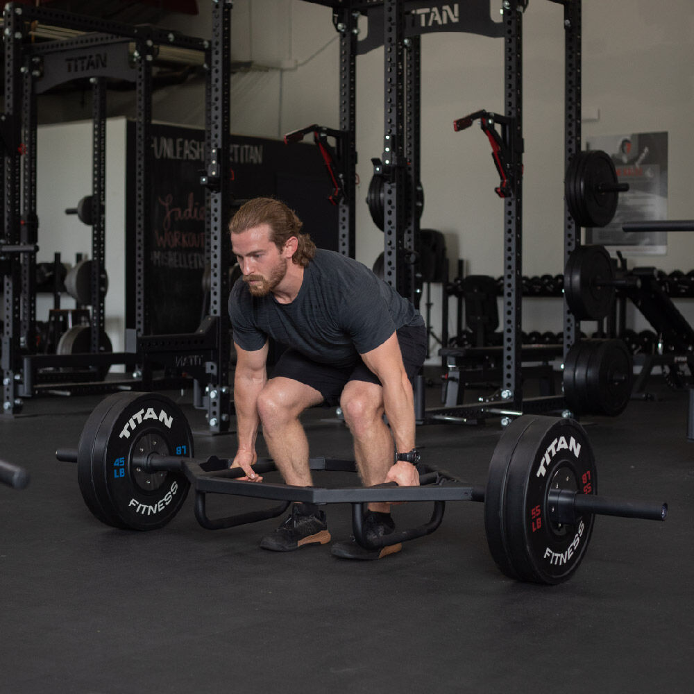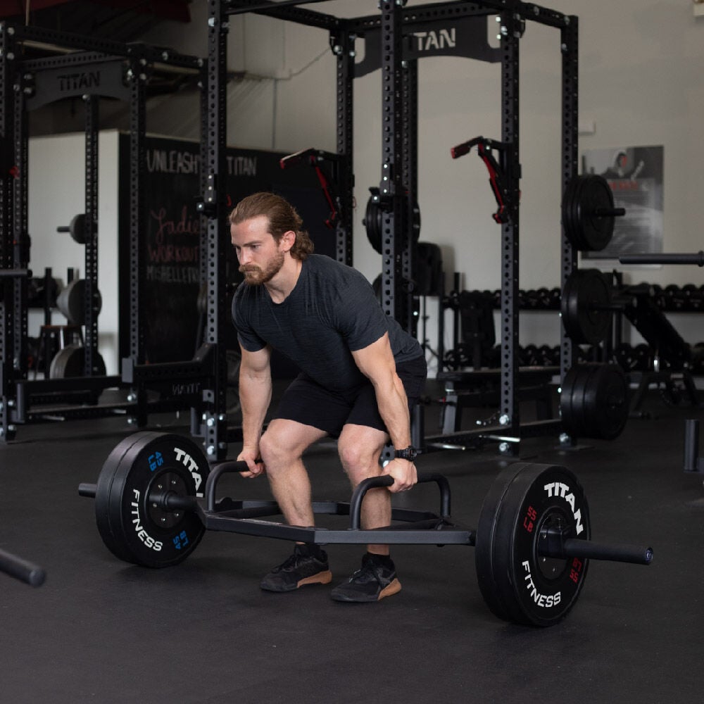 UPDATED VERSION: The Rackable Trap Bar now has an improved black powder coat, medium diamond texture knurling, and Titan branded endcaps.