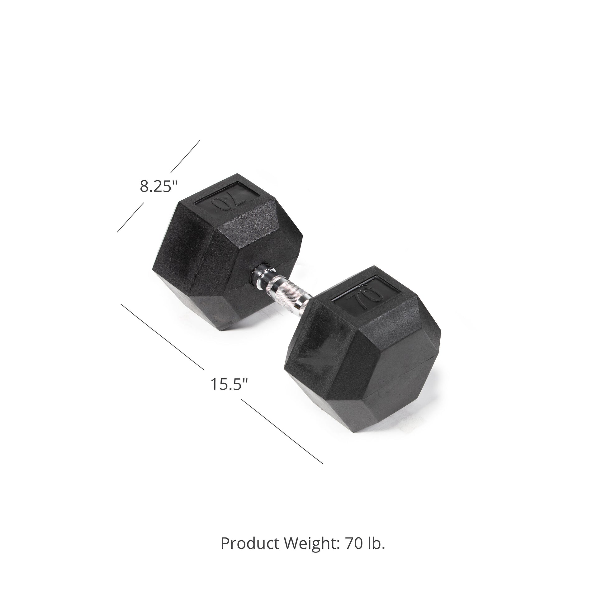 Scratch and Dent, Single 70 lb Black Rubber Coated Hex Dumbbell