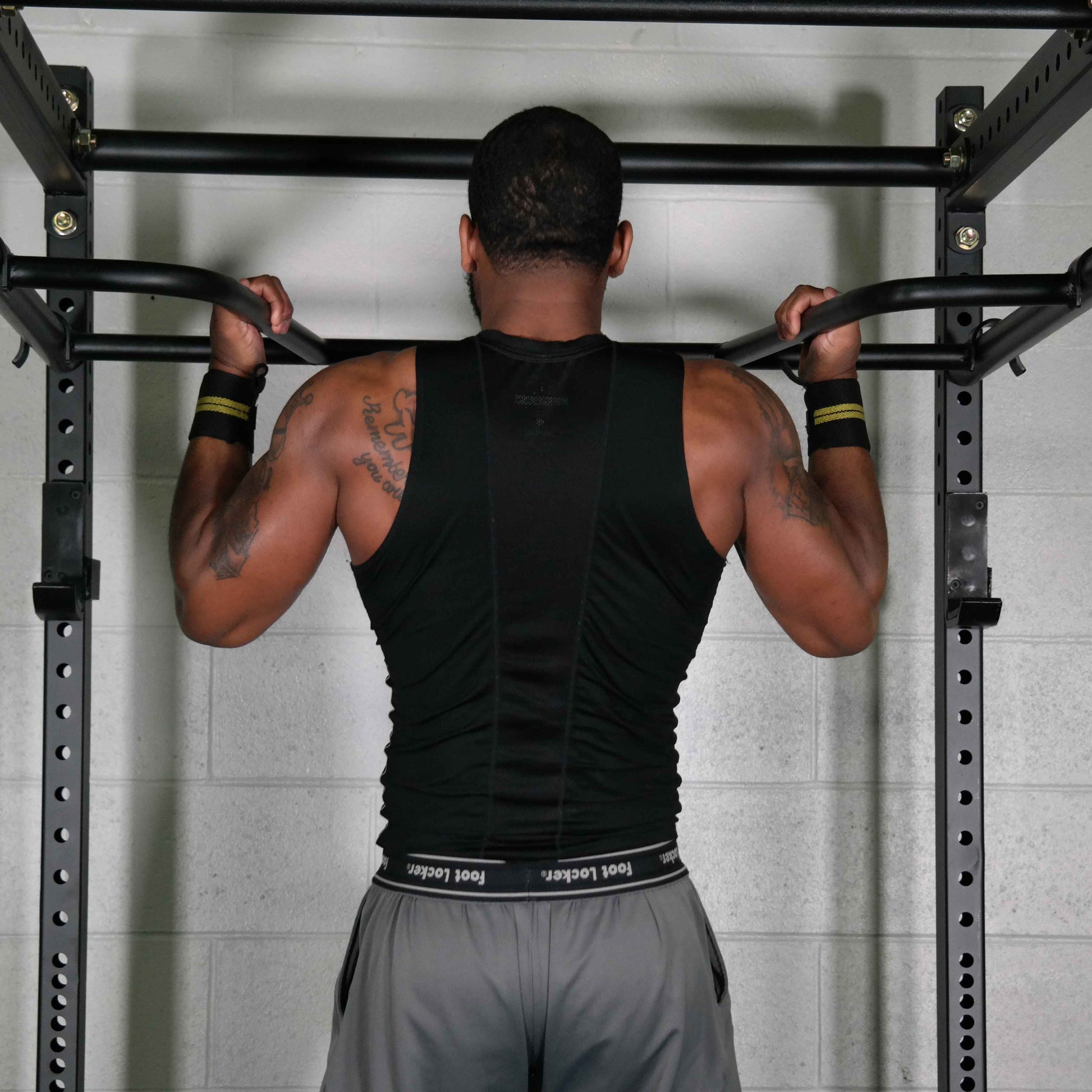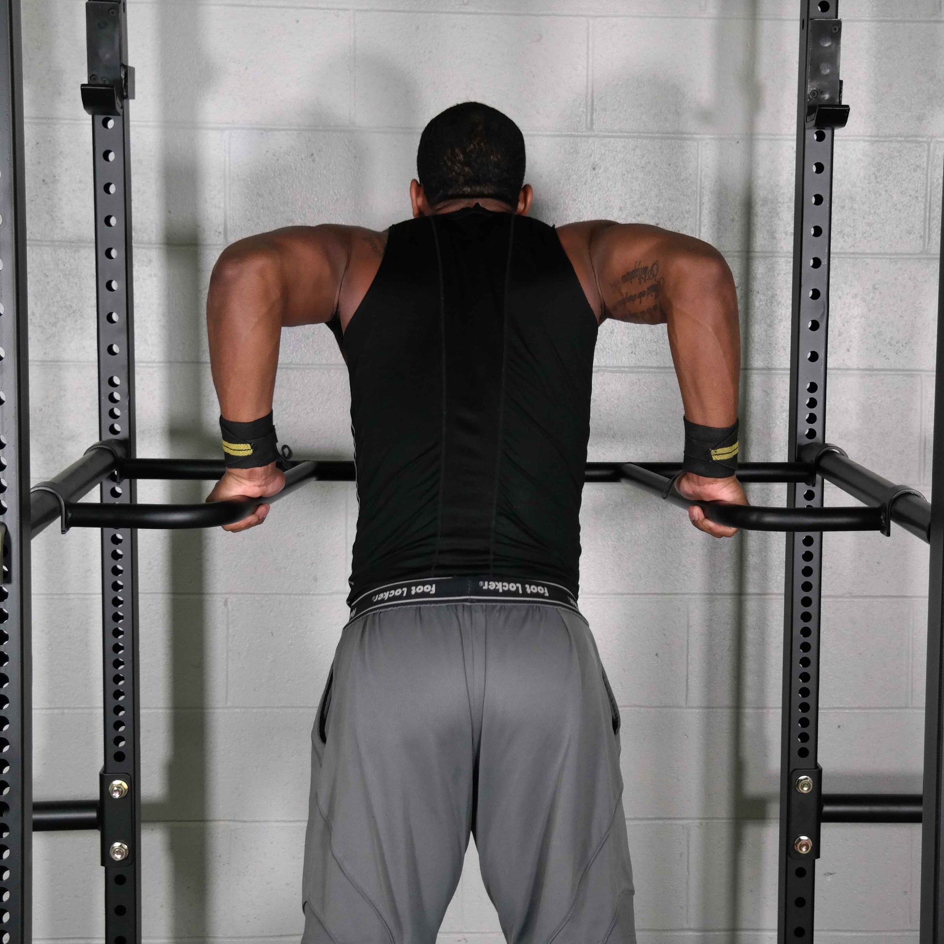 The X Dip add-on easily installs to the existing pipe/pin safeties on your Titan T-3 Power Rack— simply set up the X Dip for standard or kipping dips, or raise the X Dip to the top of the uprights for a multi-grip pull-up station.