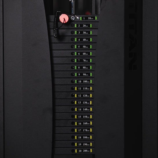 - 200 LB weight stack in 10 LB increments