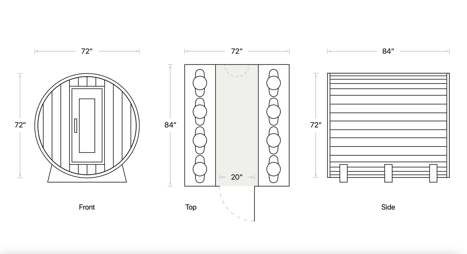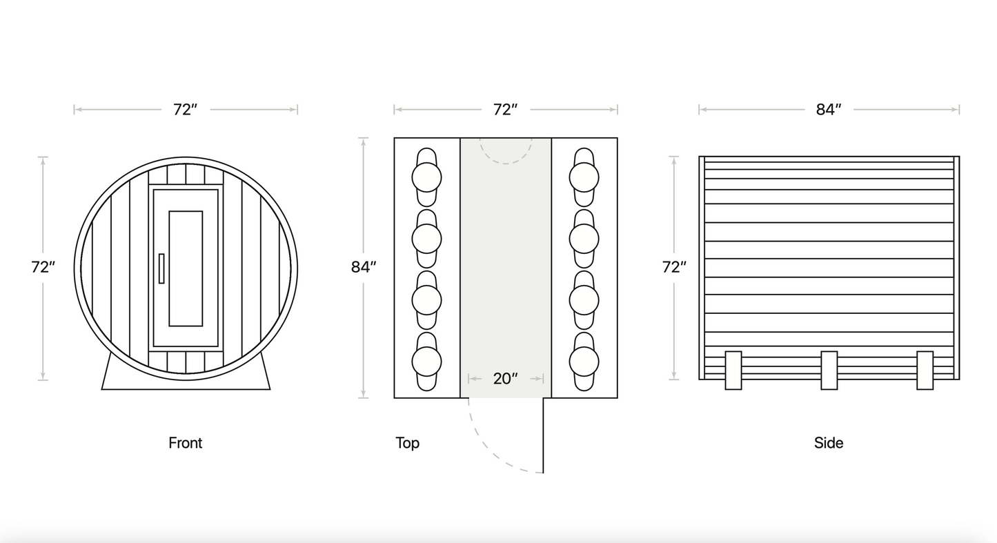 The Edwin Barrel is a traditional 6' x 7' western red cedar barrel sauna with room for up to 6-8 people that offers a simple way to bring sauna therapy to your daily lifestyle. With its barrel shape comprised of cedar, there is virtually no maintenance, and has a long lifespan.