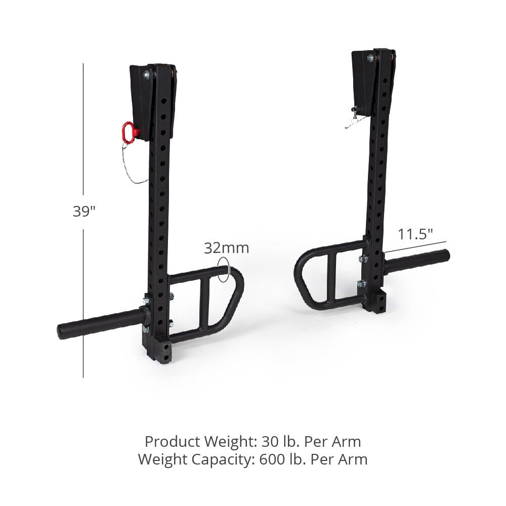 Expand the scope of your home gym with these Adjustable Lever Arm Attachments! Installation is effortless: simply slide the pin-on style bracket into your upright and lock it in with the accessory pin included. Push your upper body by adding weight to your shoulder presses, upright rows, and rotational pushes while saving space and keeping your workout rack centered. When you are ready to focus on your lower body, simply adjust the brackets lower on your power rack and add weight to your squats and deadlifts. The efficient design of our adjustable lever arms will allow you to change workouts at your own pace.