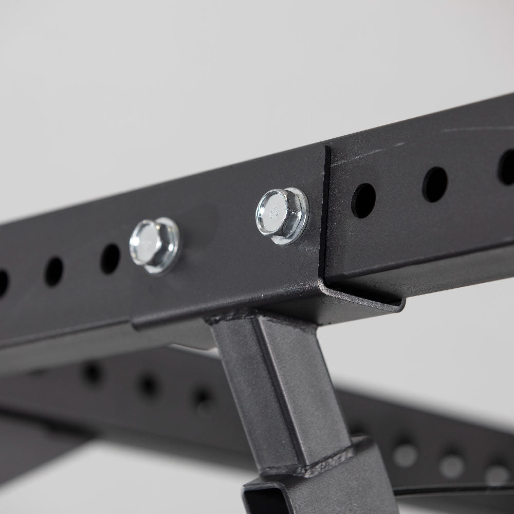 The Tricep and Lat Pulley System is a bolt-on pulley attachment designed to create a dynamic pulley system on your Short or Tall T-3 Series Power Rack. This system mounts in-between the uprights of your power rack and features two rack-mounted pulley attachments, 118-inch cable, two carabiners, and all the assembly hardware needed. The setup can hold a weight capacity of 440-pounds, perfect for performing tricep pushdowns, lat pull-downs, and other exercises.