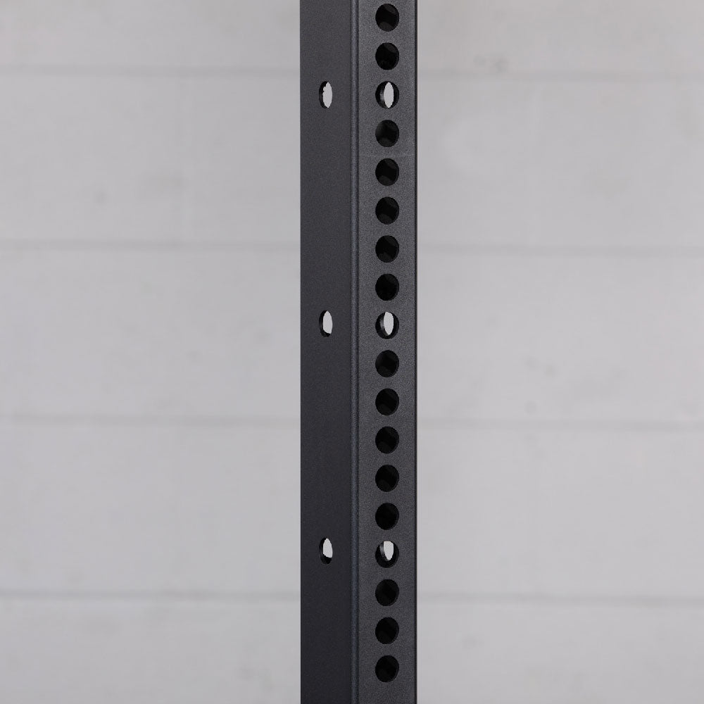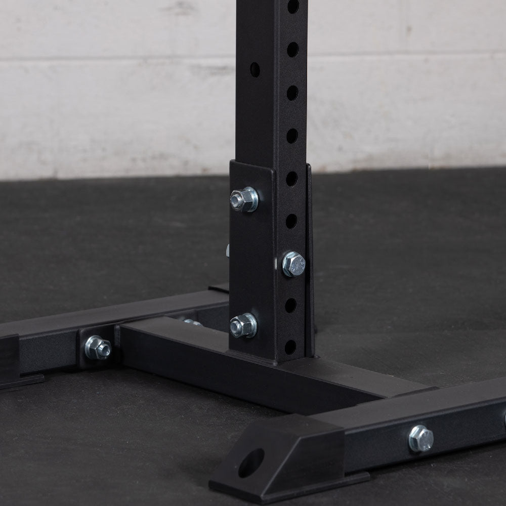 The T-3 Series Independent Squat Stand is a great solution for cramped home gyms where you need to move the stand frequently. Built-in two pieces, the stands feature reinforced J-Hooks, Westside hole spacing through the bench and clean pull zone, 2" spacing above and below, 6" side hole spacing throughout the entire upright. This unit offers a considerable number of positions helping to accommodate a wide range of height and exercises. The independent upright design is extremely stable and does not need to be bolted to the floor. Many Olympic weightlifters prefer this set up for its small footprint and low-profile design. The bolt-together construction allows you to easily transport and fit the rack into any room or basement without having to worry about ceiling height.