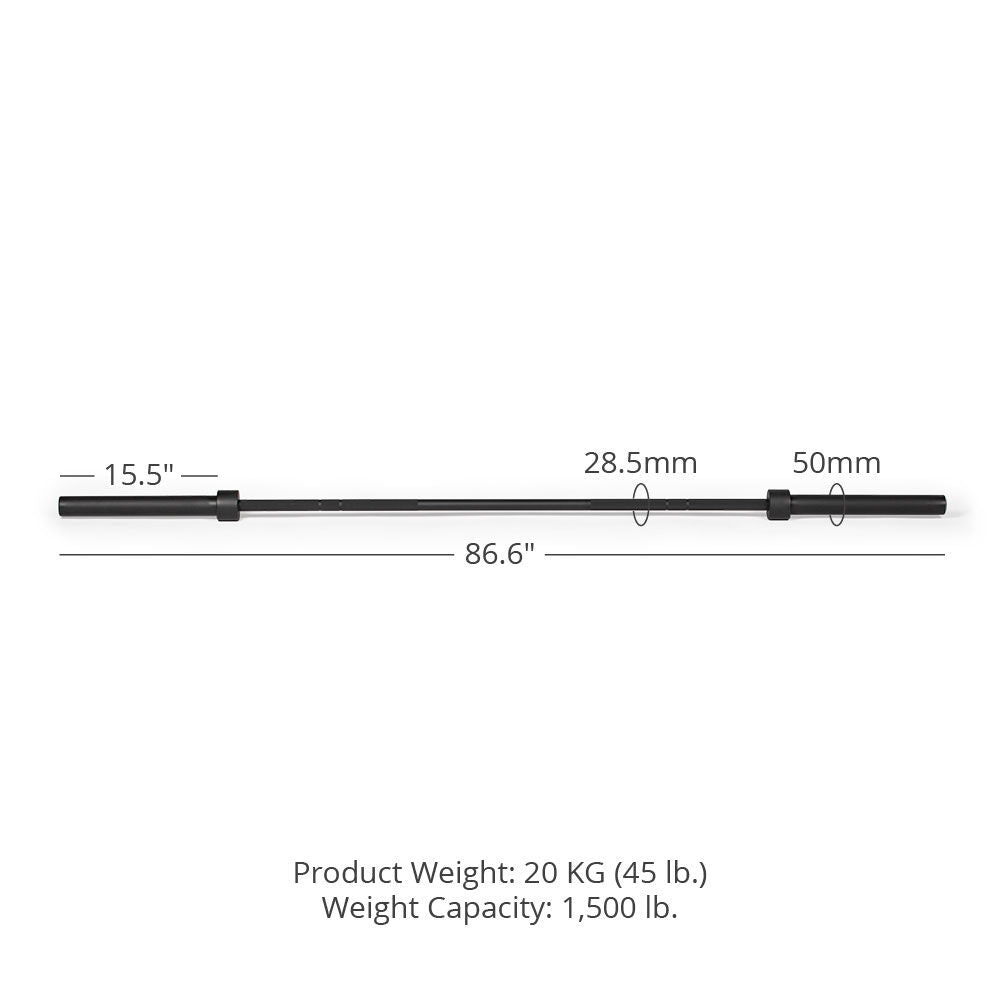 Made in the USA with American Steel, the Black Cerakote TITAN Series Olympic Barbell is suitable for Olympic lifts and slower, heavier power lifts.