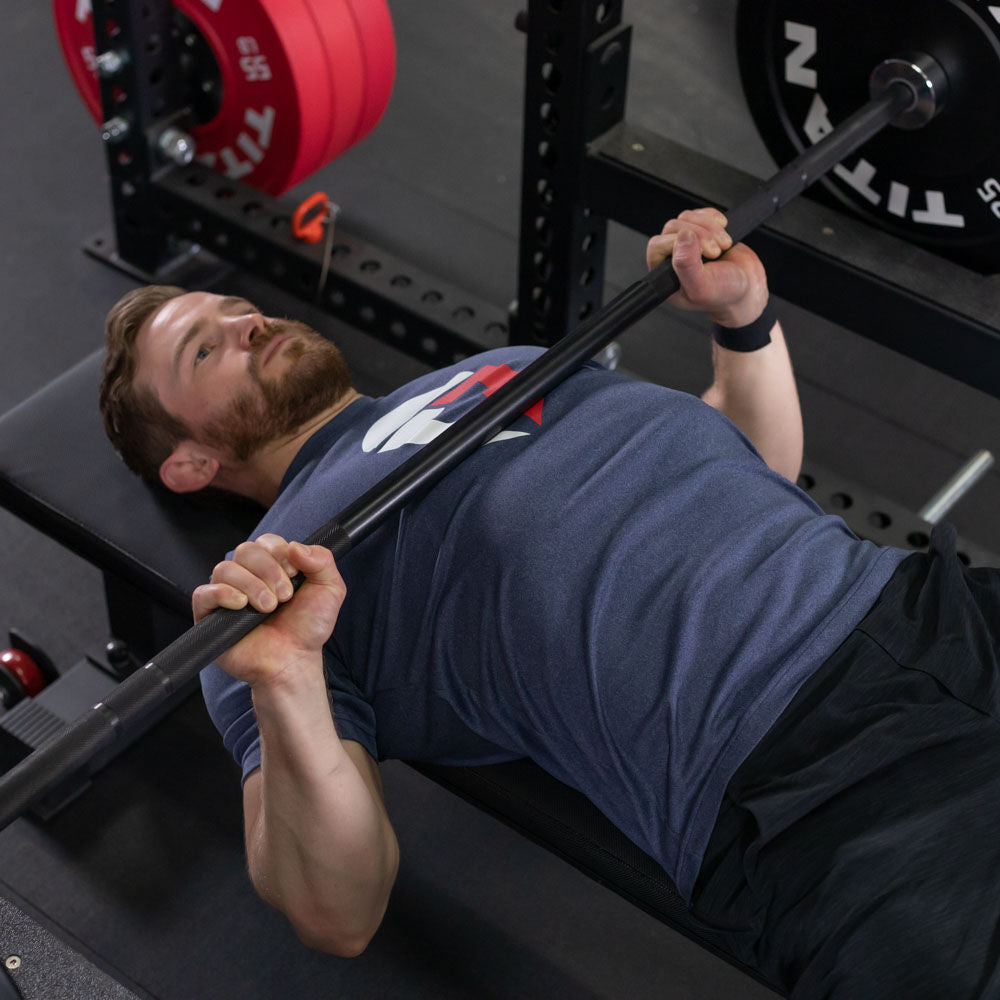 Unleash your inner Titan with the TITAN Series Shorty Olympic Barbell, part of our exclusive selection of barbells made in the USA and constructed from hand-selected virgin, non-recycled American Steel. This top-of-the-line multipurpose barbell weighs 14 KG (30 LB). It features dual knurl marks, medium-diamond textured knurling, and a black zinc shaft with hard chrome-coated sleeves. The sleeves are 9-in. long, reducing the weight load. Suitable for Olympic weightlifting and powerlifting, this balanced hybrid bar provides 145,000 PSI tensile strength for the right amount of whip or flex for fluid movement through your lift. Smash your daily workouts and hit your PR with this top-rated bar.